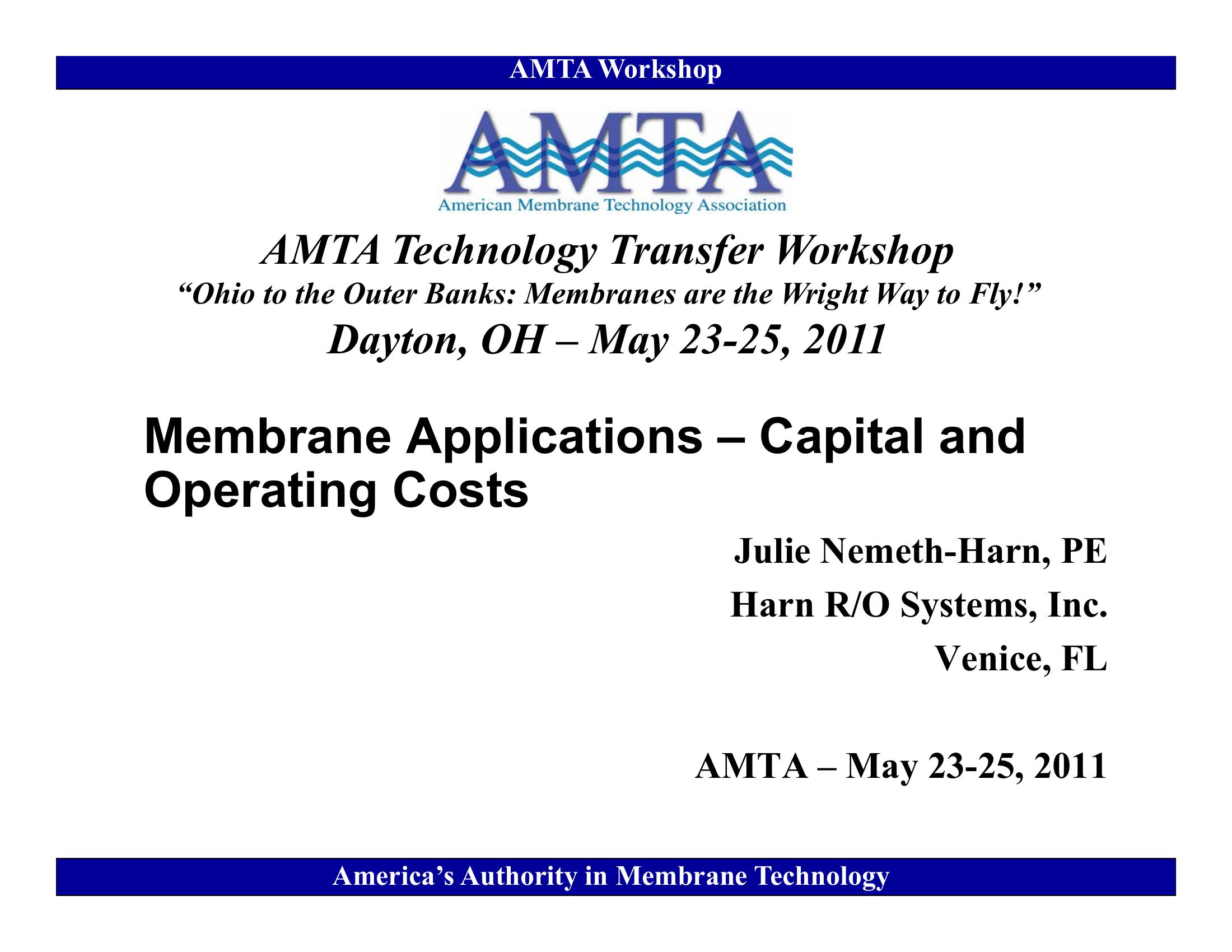 Membrane Applications – Capital and Operating Costs