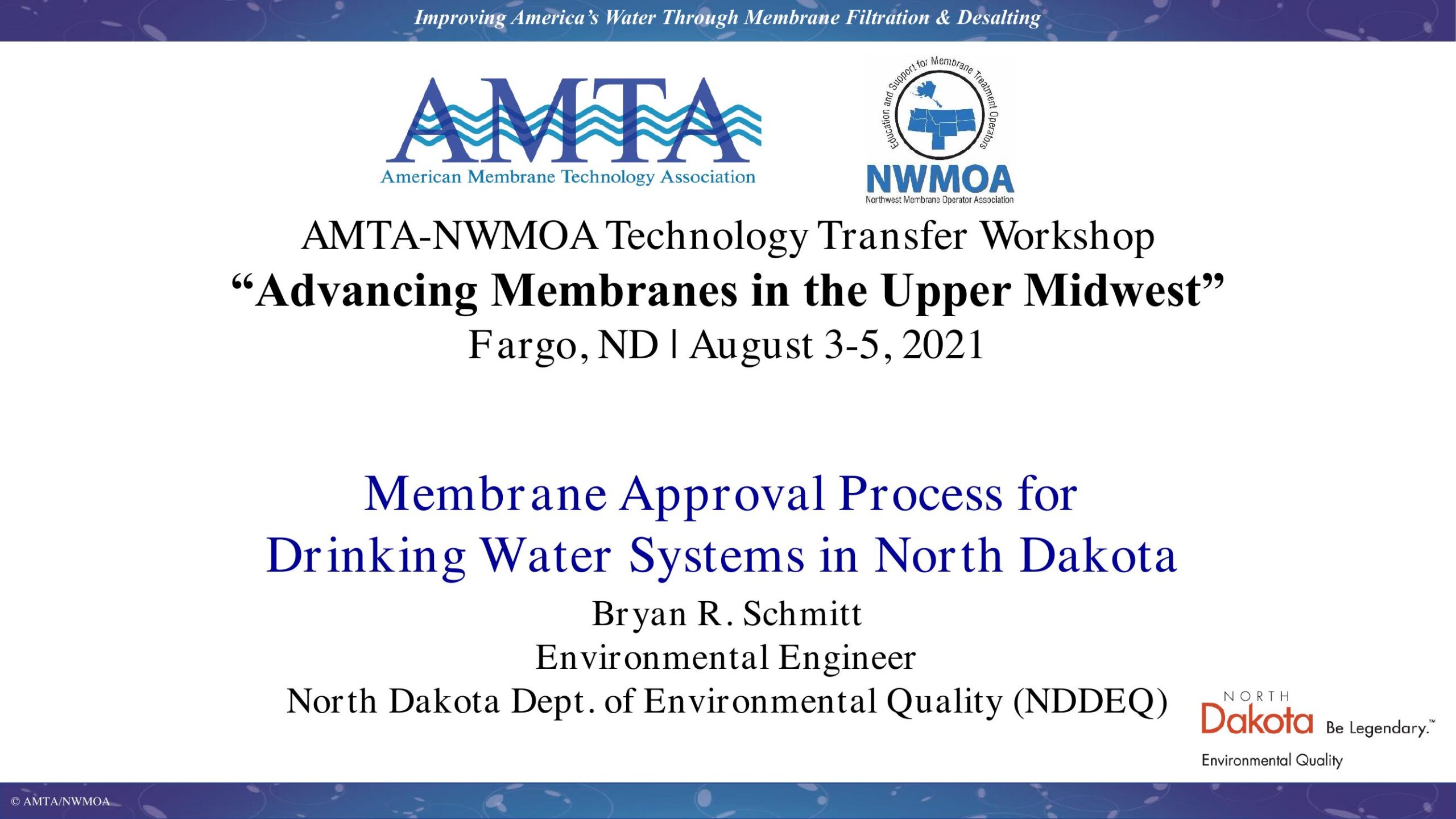 This presentation covers the approval process and ongoing monitoring requirements for membrane water treatment plants in North Dakota. The intent of this talk is to describe how the North Dakota Department of Environmental Quality (NDDEQ) evaluates membrane treatment technology performance and what the NDDEQ requires of public water systems to achieve regulatory compliance.