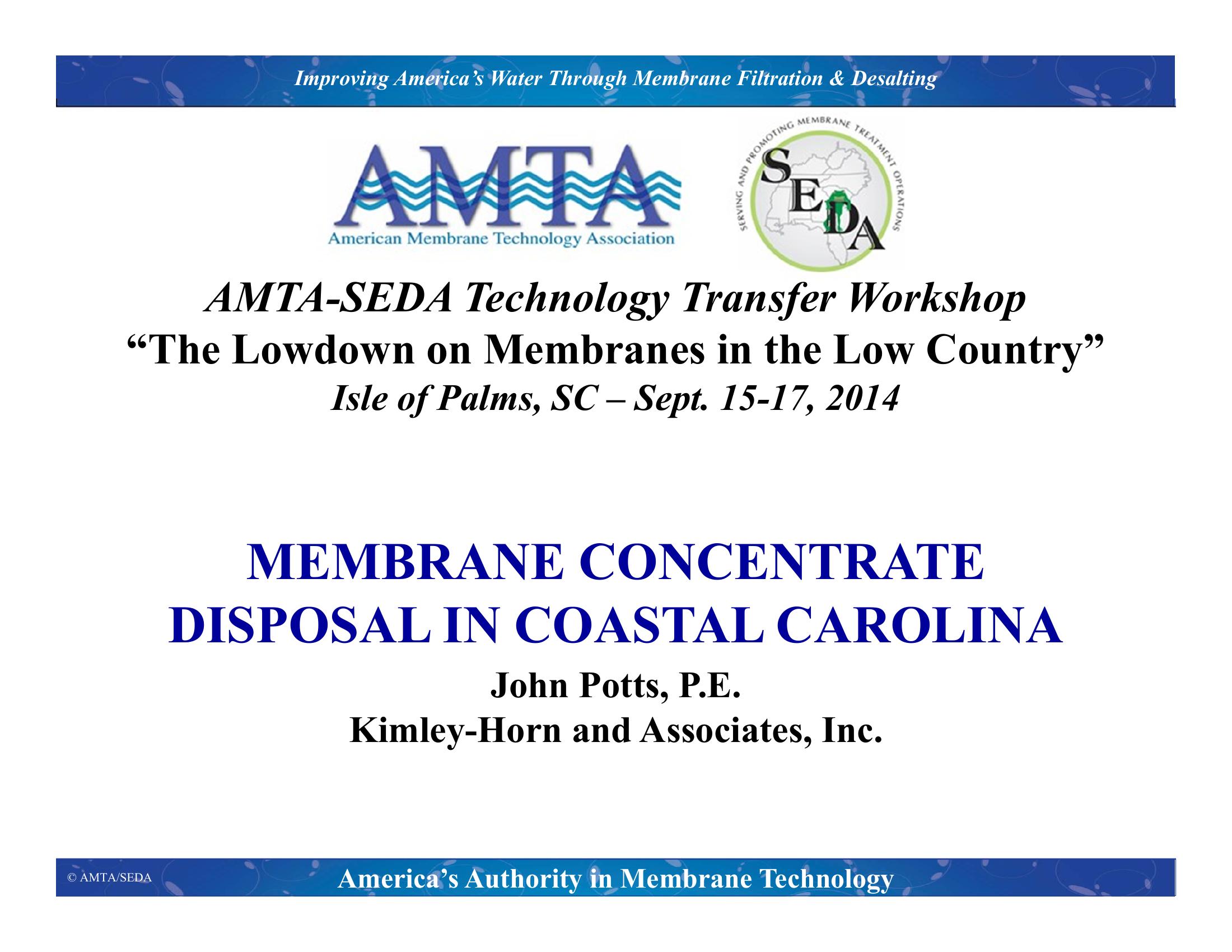 Membrane Concentrate Disposal in Coastal Carolina