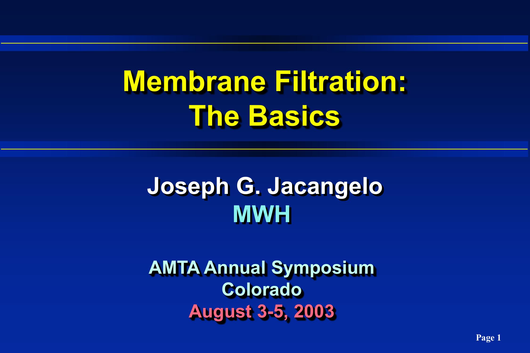 Basic overview of all membrane water treatment processes. Pressure driven, thermal driven and electrically driven processes are addressed. Detail is provided on system components, process configurations and terminology as well as operational issues such as membrane fouling.