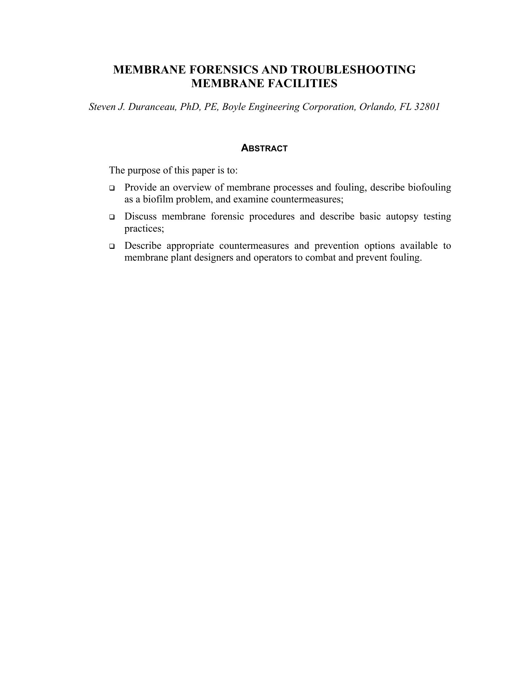 Membrane Forensics and Troubleshooting Membrane Facilities