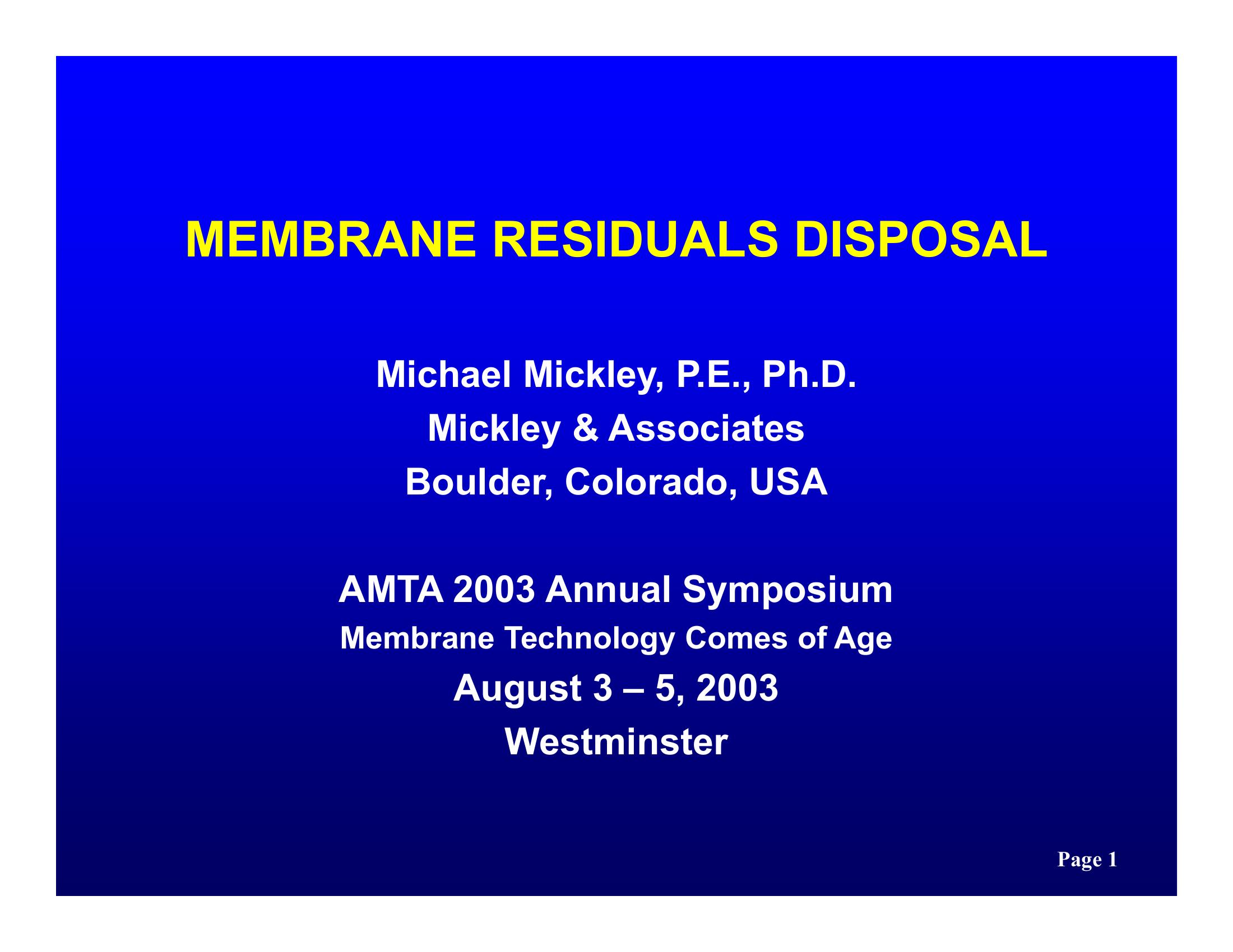 | Keywords | Membrane treatment residuals, membrane treatment concentrate |