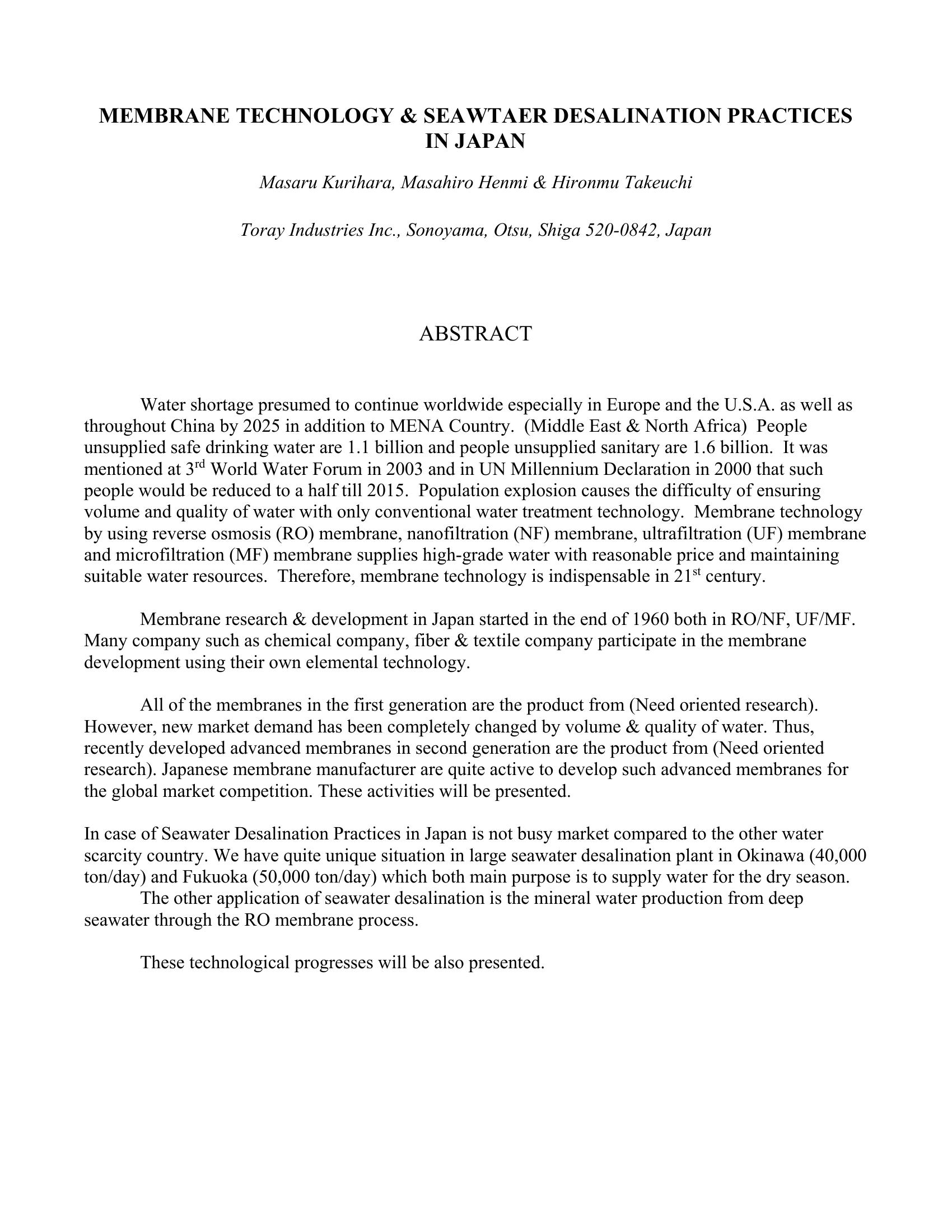 | Keywords | seawater desalnation, Japan, |