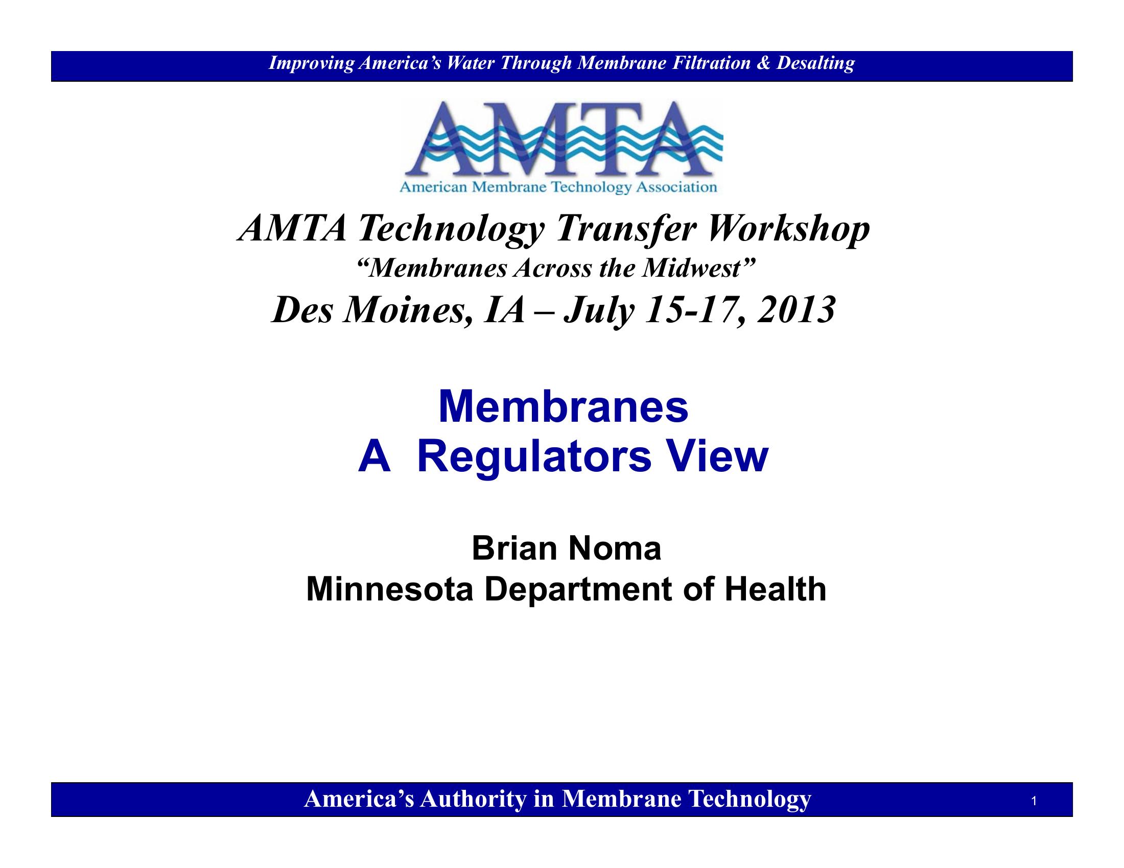 This PowerPoint presents a Regulators view of membrane technology for the Midwest USA.