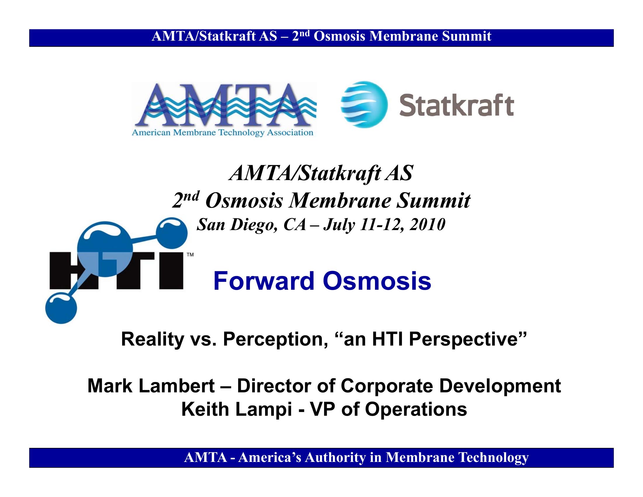 This talk provides a summary of the role that FO currently plays in manufacturering, gas and oil production, water recycling and waste to energy efforts. Forward osmosis and pressure retarded osmosis have potential roles to play in resource recovery and power generation.