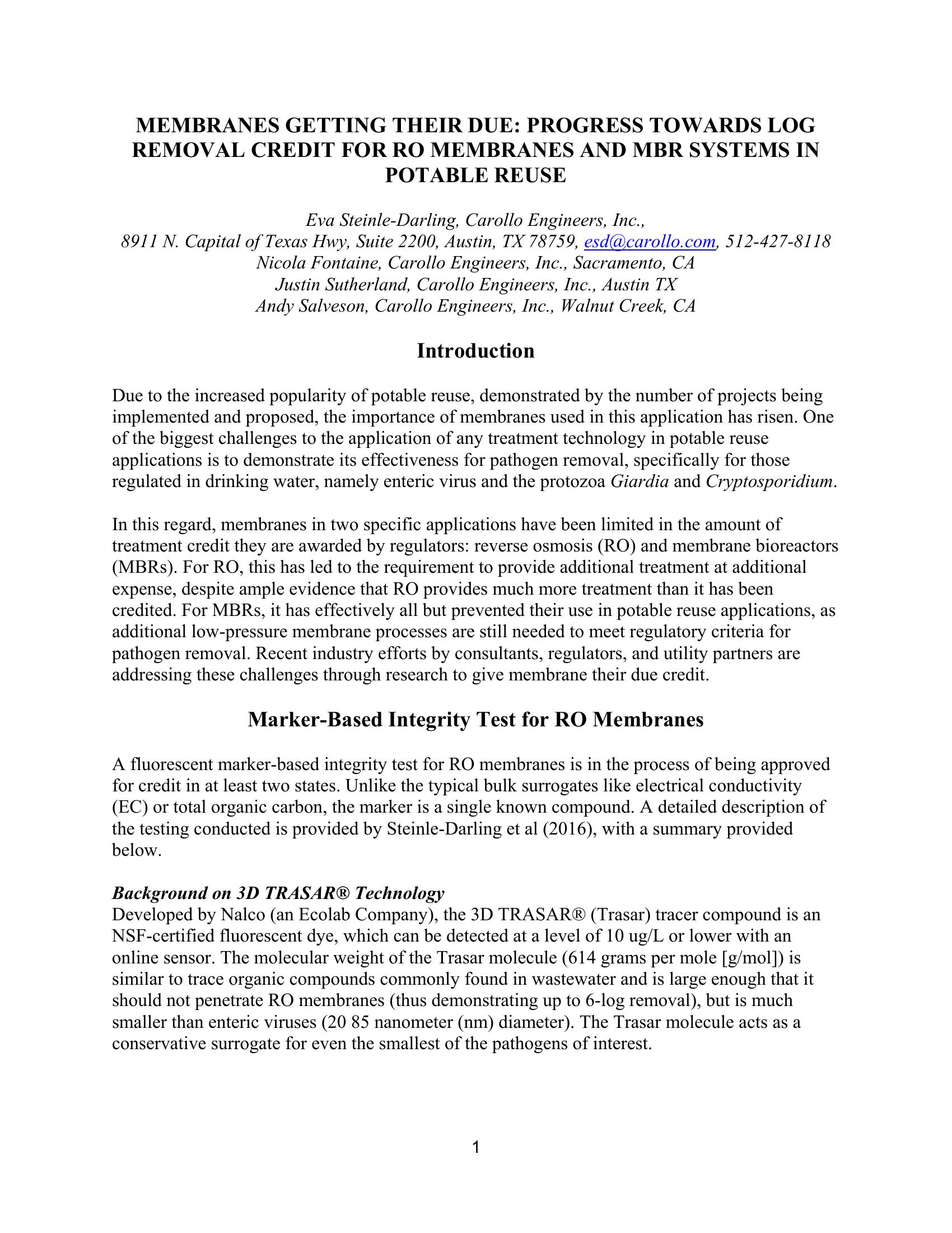 | Keywords | Potable Reuse, Pathogen Removal, RO |
