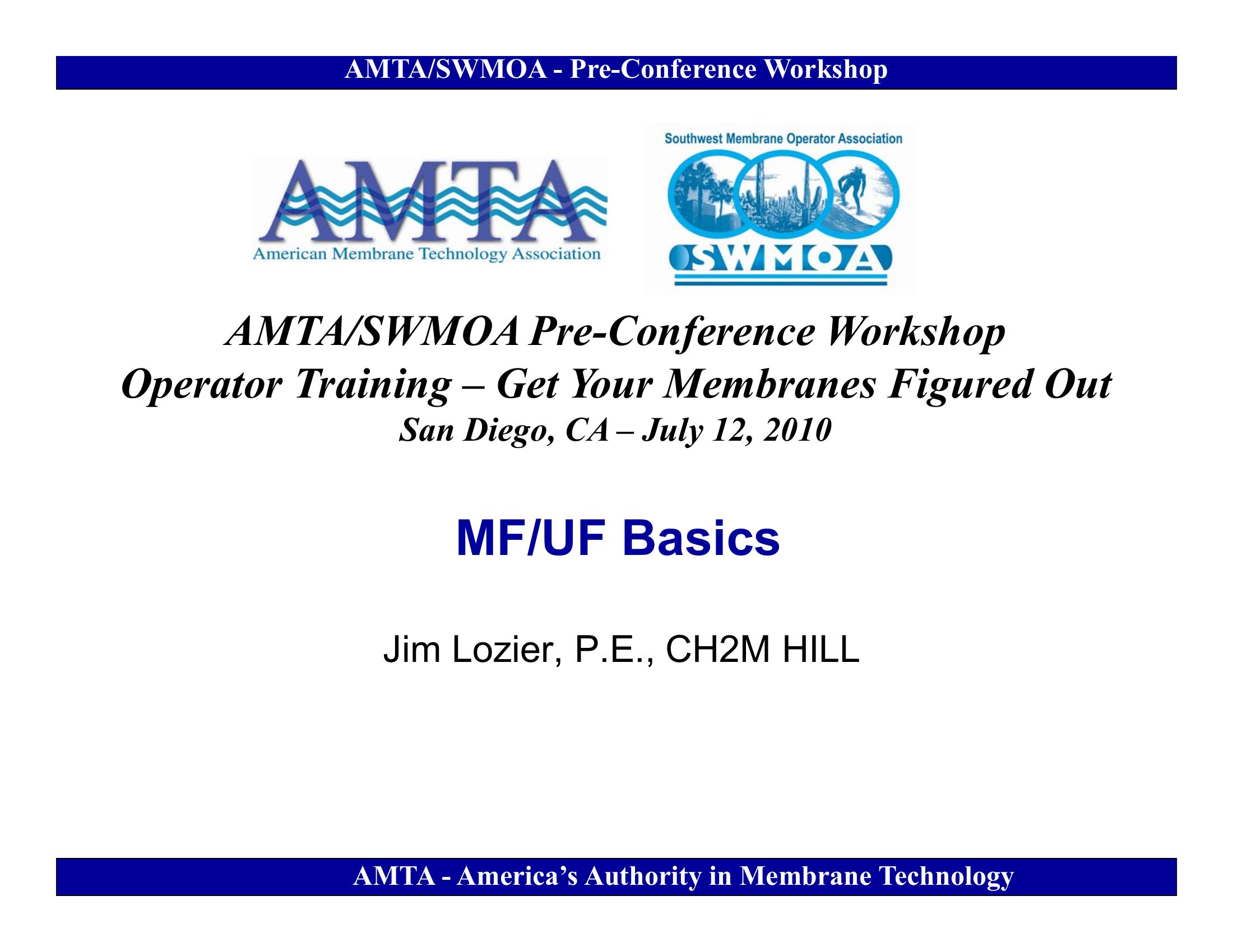 The presentation provides an overview of removal capabilities, system configurations, fouling, management of residuals, regulations and integrity monitoring. The importance of pretreatment is also discussed providing the reader with a basic understanding of microfiltration and ultrafiltration.