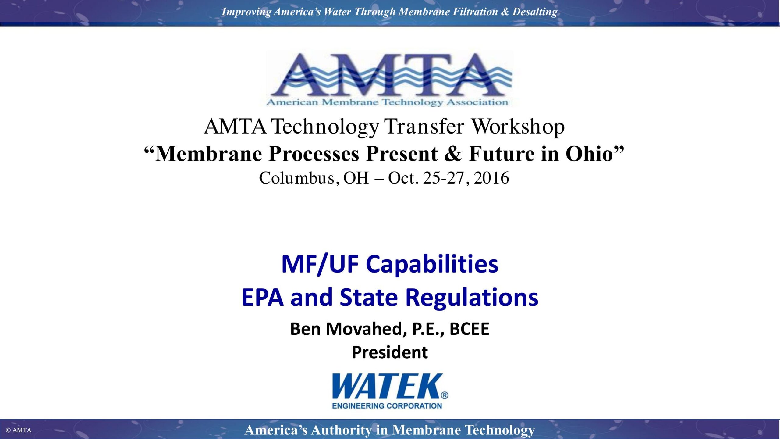 The presentation will cover capabilities and limitations of Microfiltration (MF) and Ultrafiltration (UF) and a review the EPA guidelines and other state criteria for designing and implementing low pressure membrane systems for municipal applications.