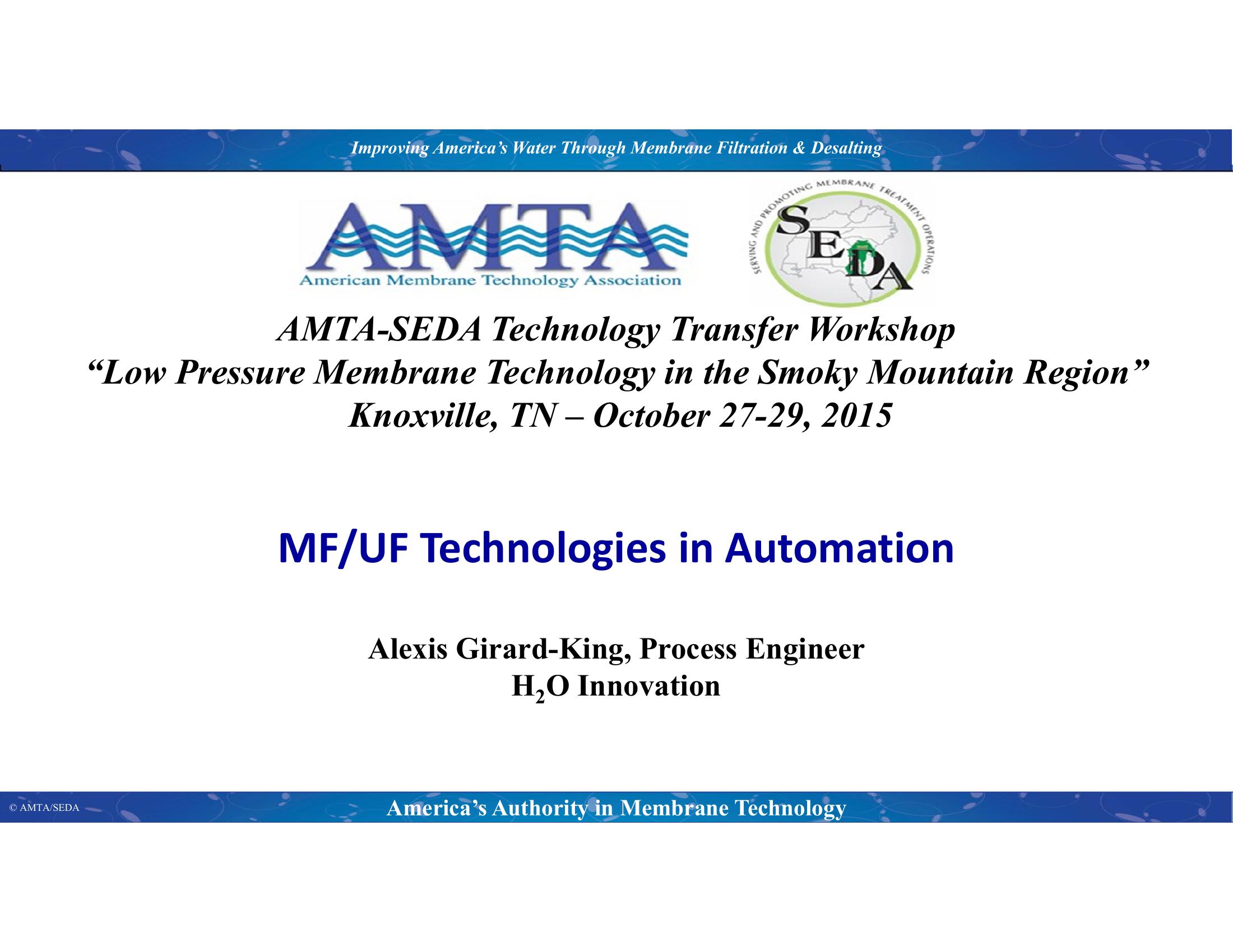 MF/UF Technologies in Automation