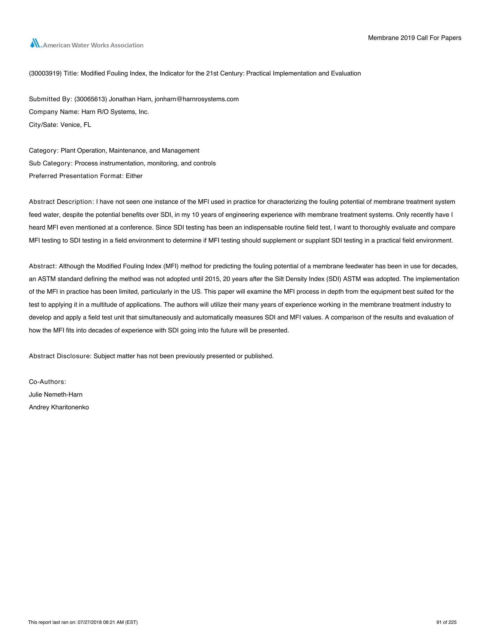 | Keywords | Modified Fouling Index, Implementation, Evaluation |