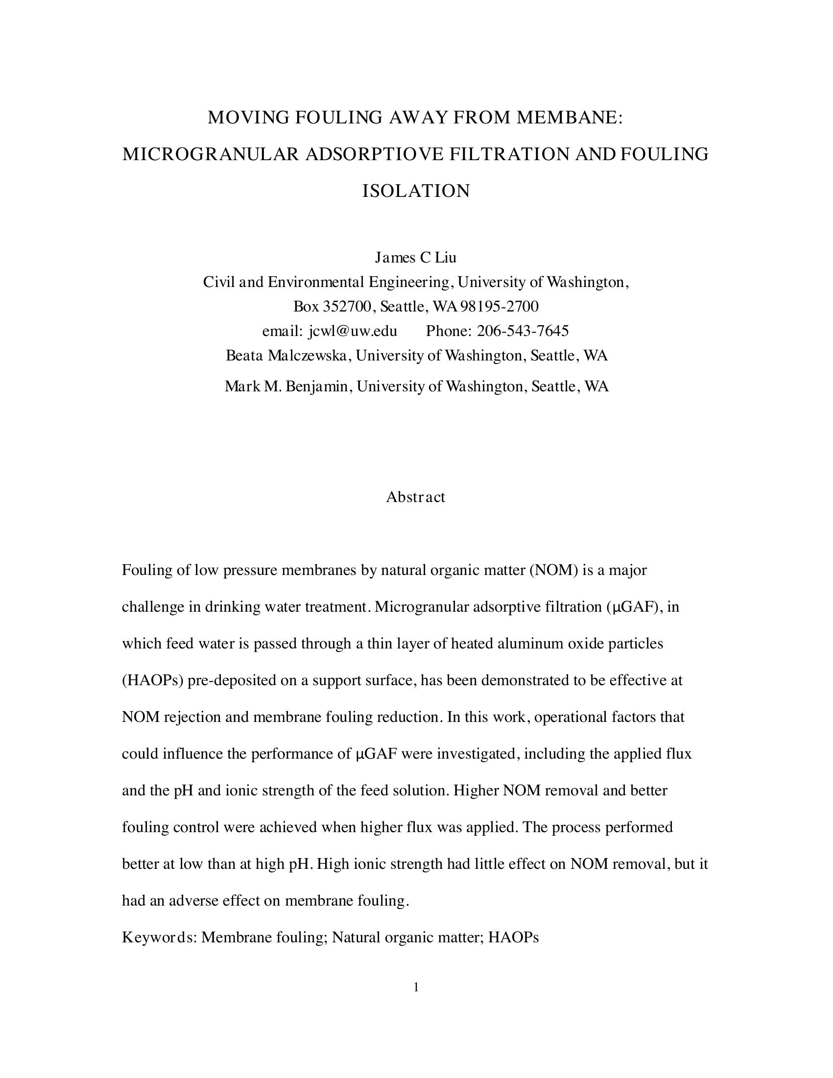 | Keywords | Heated Aluminum Oxide Particles (HAOP), Pretreatment, Natural Organic Matter (NOM) |