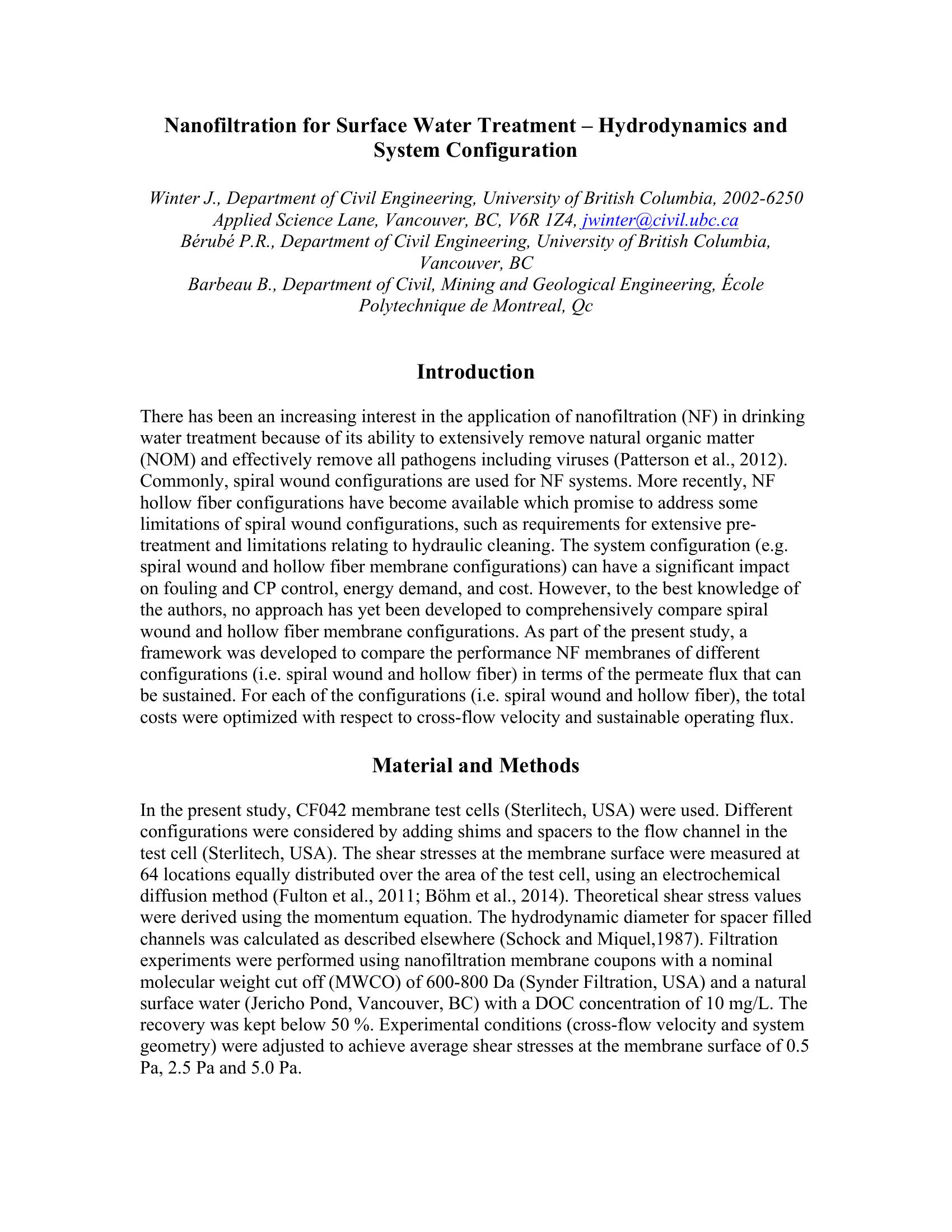 Nanofiltration for Surface Water Treatment – Hydrodynamics and System Configuration