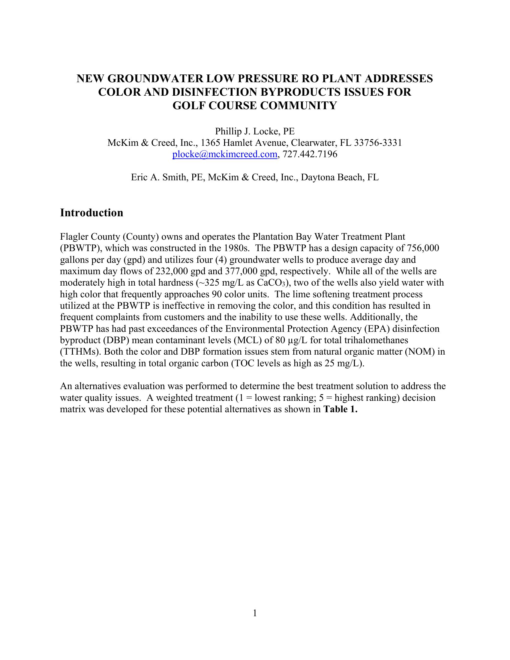 This presentation describes a new RO water plant under design to remove hardness, color and other contaminants from a groundwater supply containing a significant organic component. The design is relevant and important to the program since it illustrates key components that must be included in RO design to reduce fouling and scaling. The paper will also present detailed pilot study information used for design and for operational assistance.