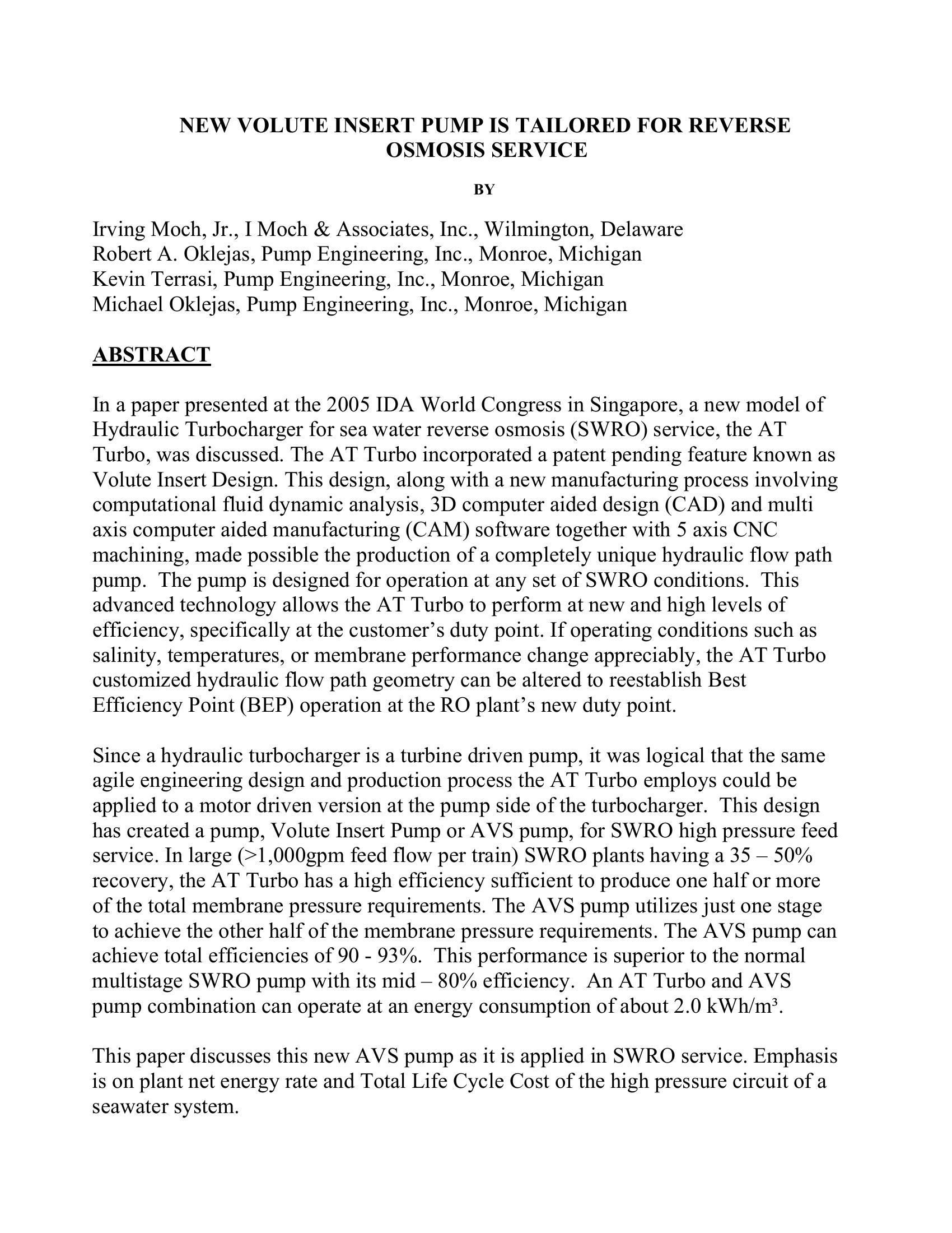 | Keywords | seawater desalination, pumps, energy efficiency |