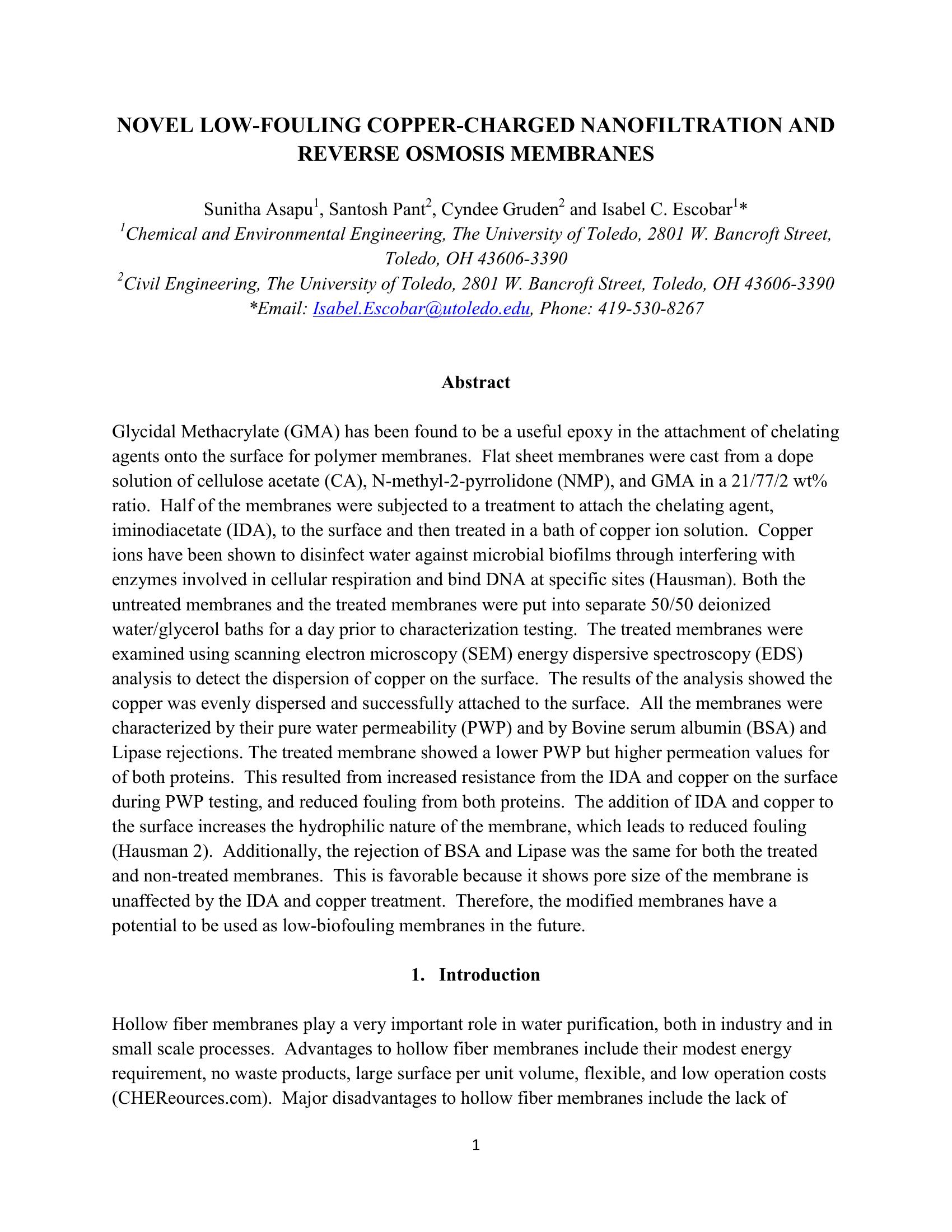 | Keywords | Low-Fouling, Nanofiltration, Reverse Osmosis |