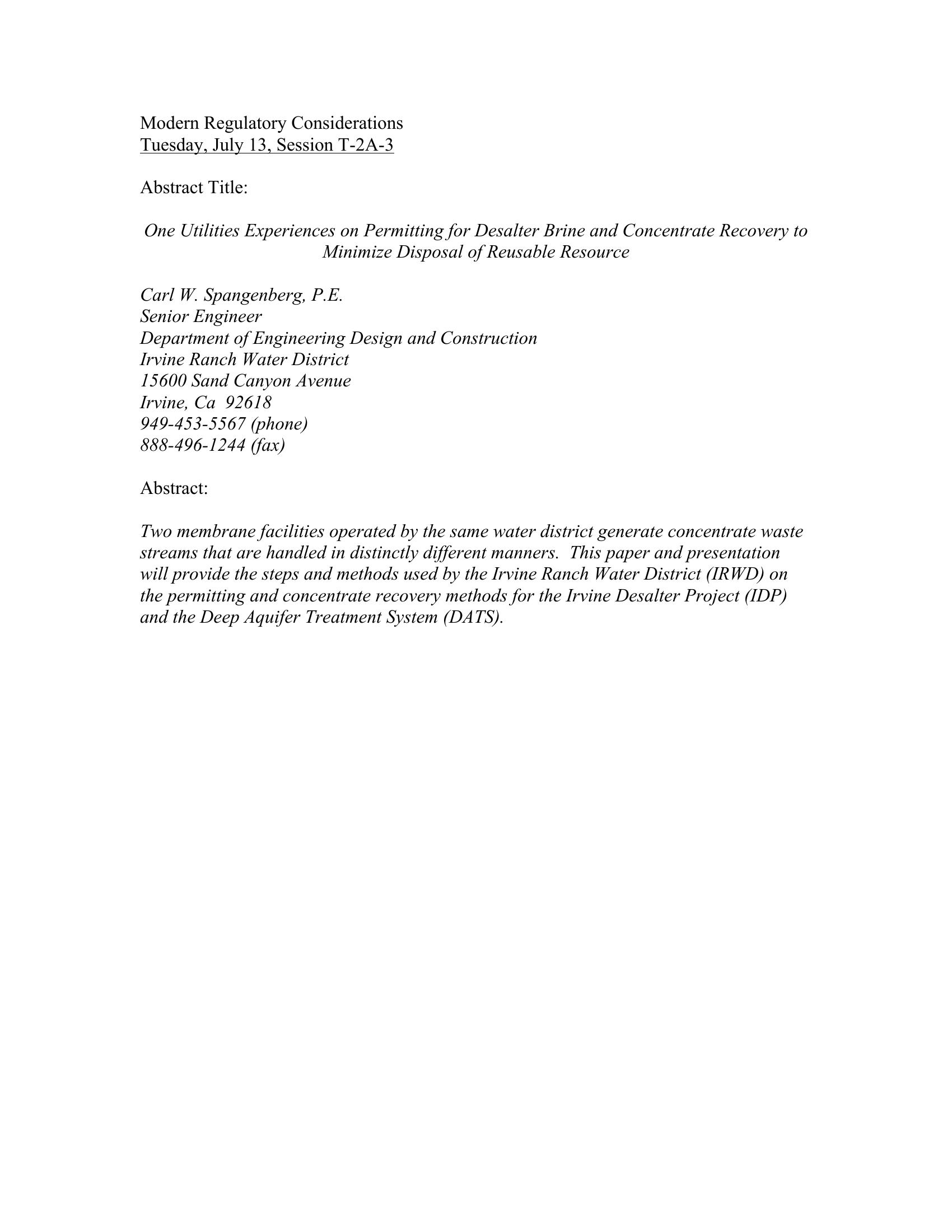 | Keywords | Irvine Ranch Water District, concentrate recovery, permitting |