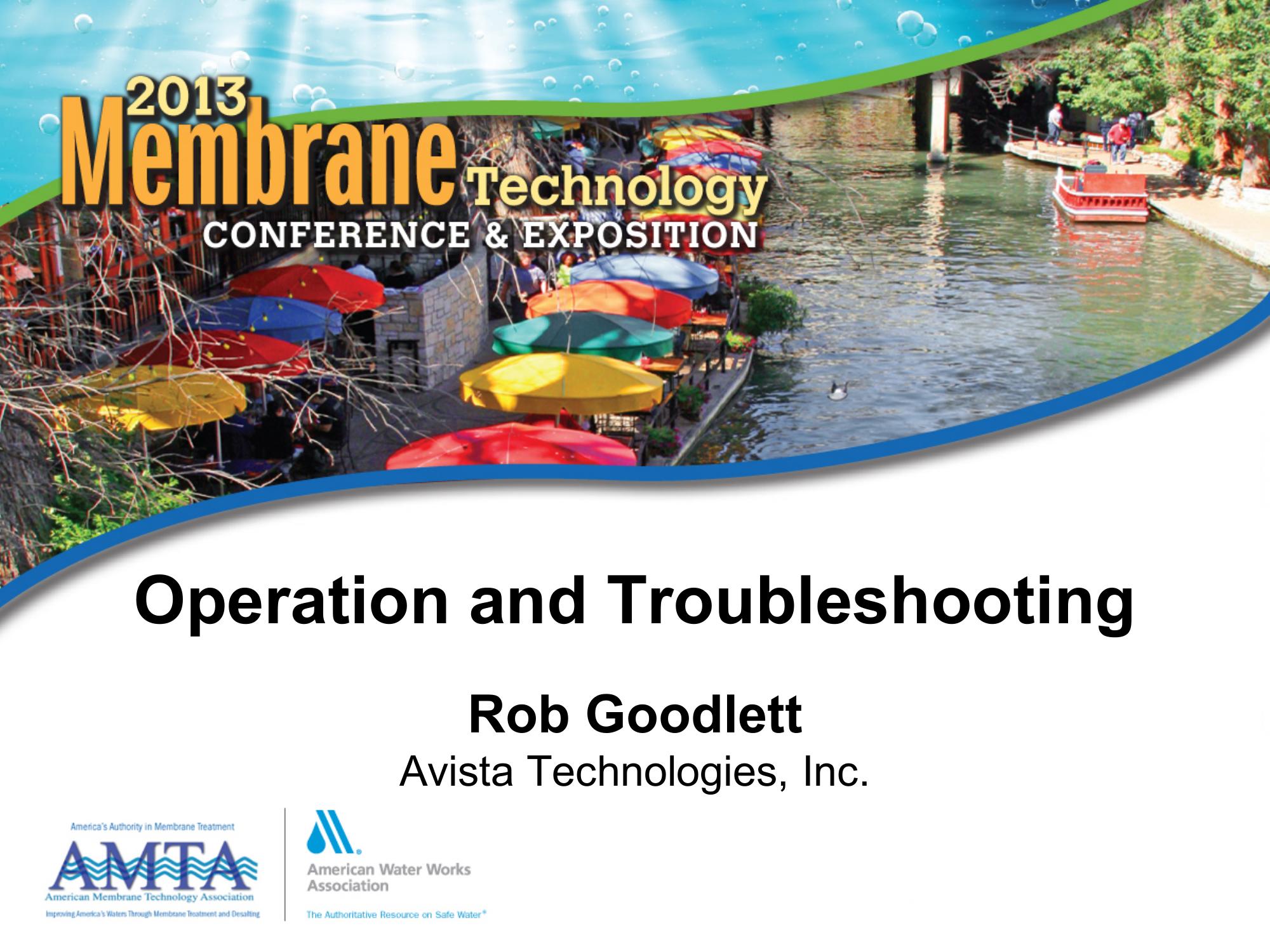 Membrane system operations and troubleshooting is reviewed. Recommended maintenance protocols treatment plants are detailed including oversight of data through normalization to detect potential problems. Membrane fouling and scaling is also described with information presented on typical causes and methods to reverse or clean membranes to restore operational productivity.