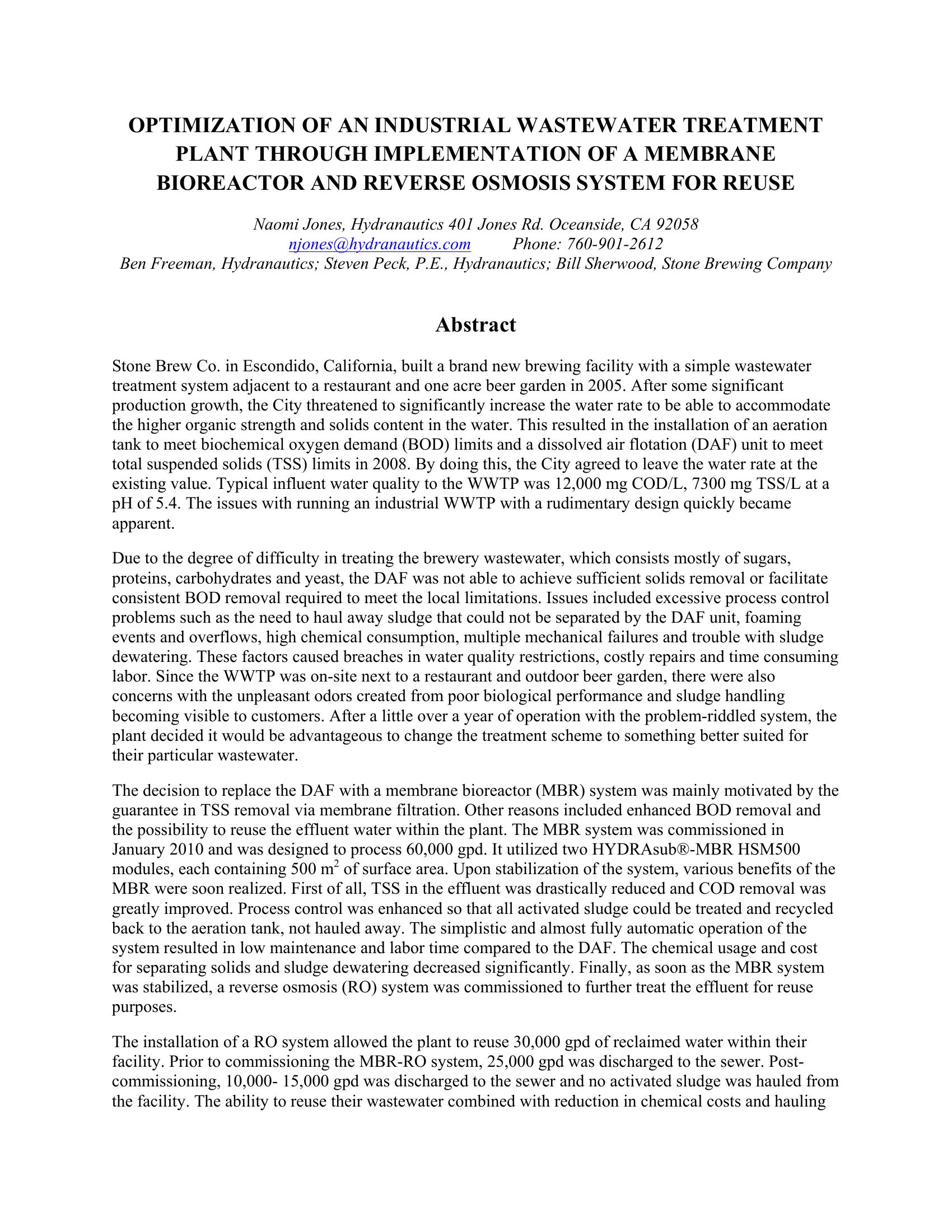 | Keywords | Industrial Wastewater, Bioreactor, Reverse Osmosis |