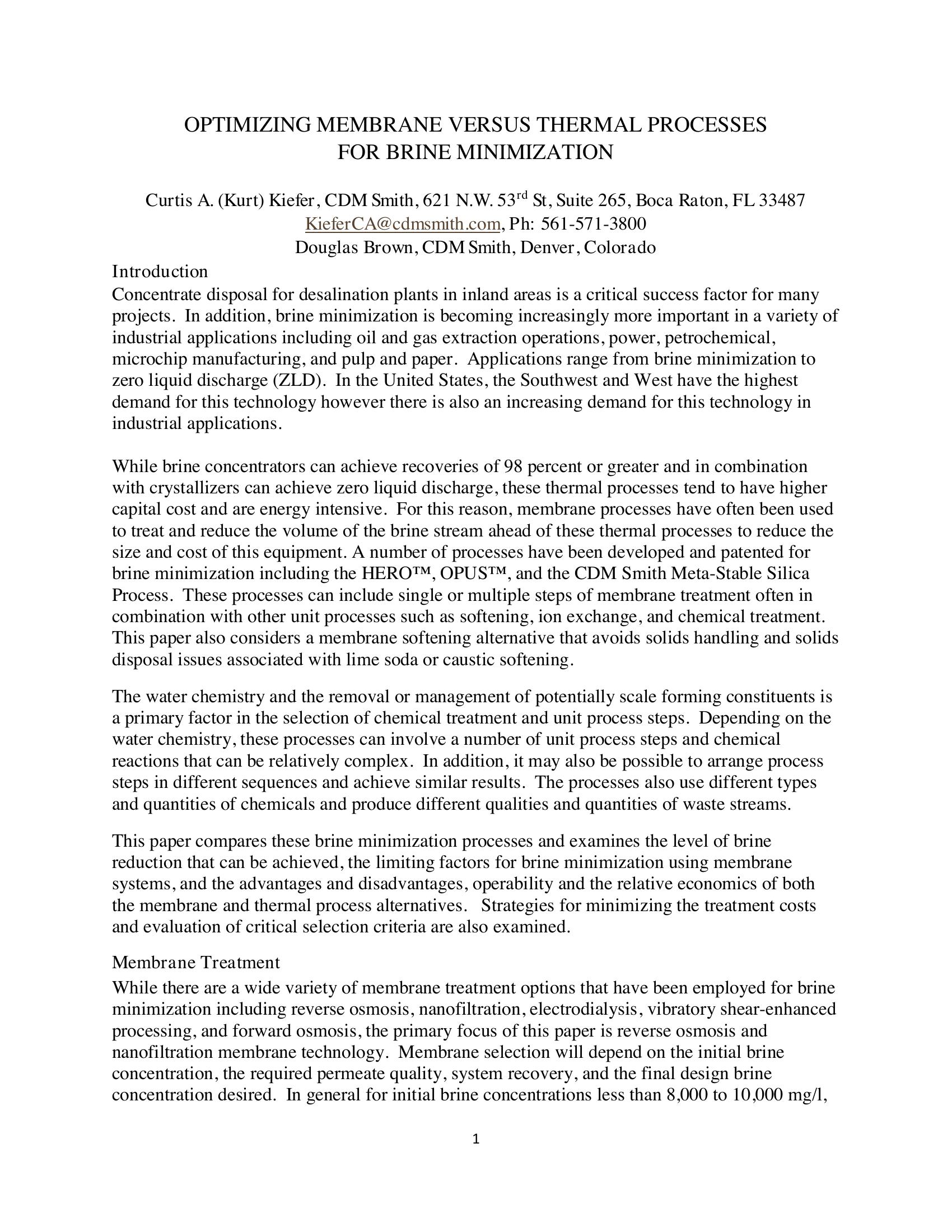 This paper compares brine minimization processes and examines the level of brine reduction that can be achieved, the limiting factors for brine minimization using membrane systems, and the advantages and disadvantages, operability and the relative economics of both the membrane and thermal process alternatives. Strategies for minimizing the treatment costs and evaluation of critical selection criteria are also examined.