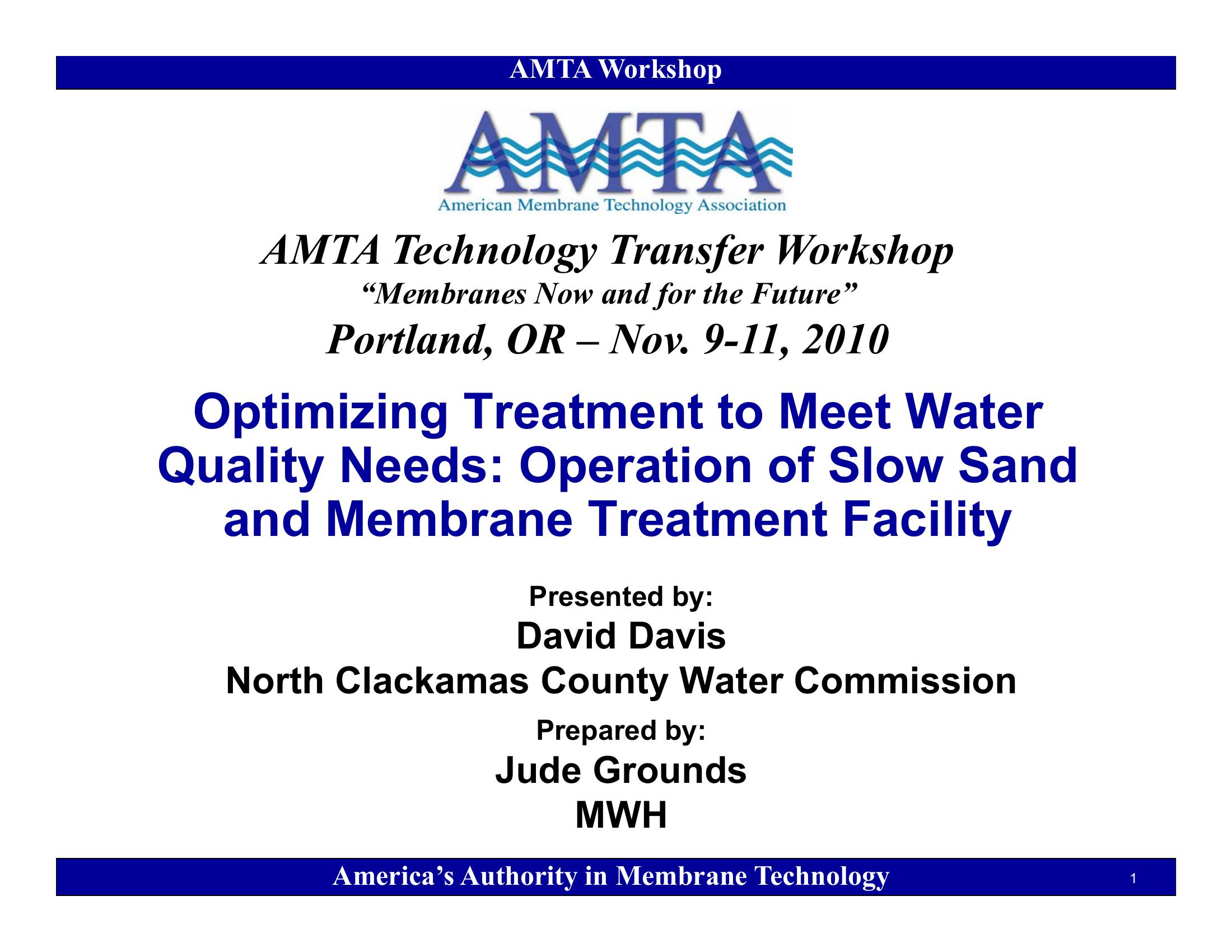 Optimizing Treatment to Meet Water Quality Needs: Operation of Slow Sand and Membrane Treatment Facility