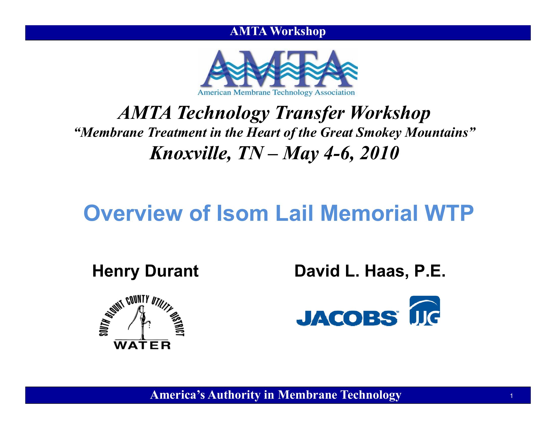 This powerpoint focuses on the development and construction of the J. Isom Lail Water Treatment Plant, an 8 mgd membrane filtration plant, located near Maryville, Tennessee.