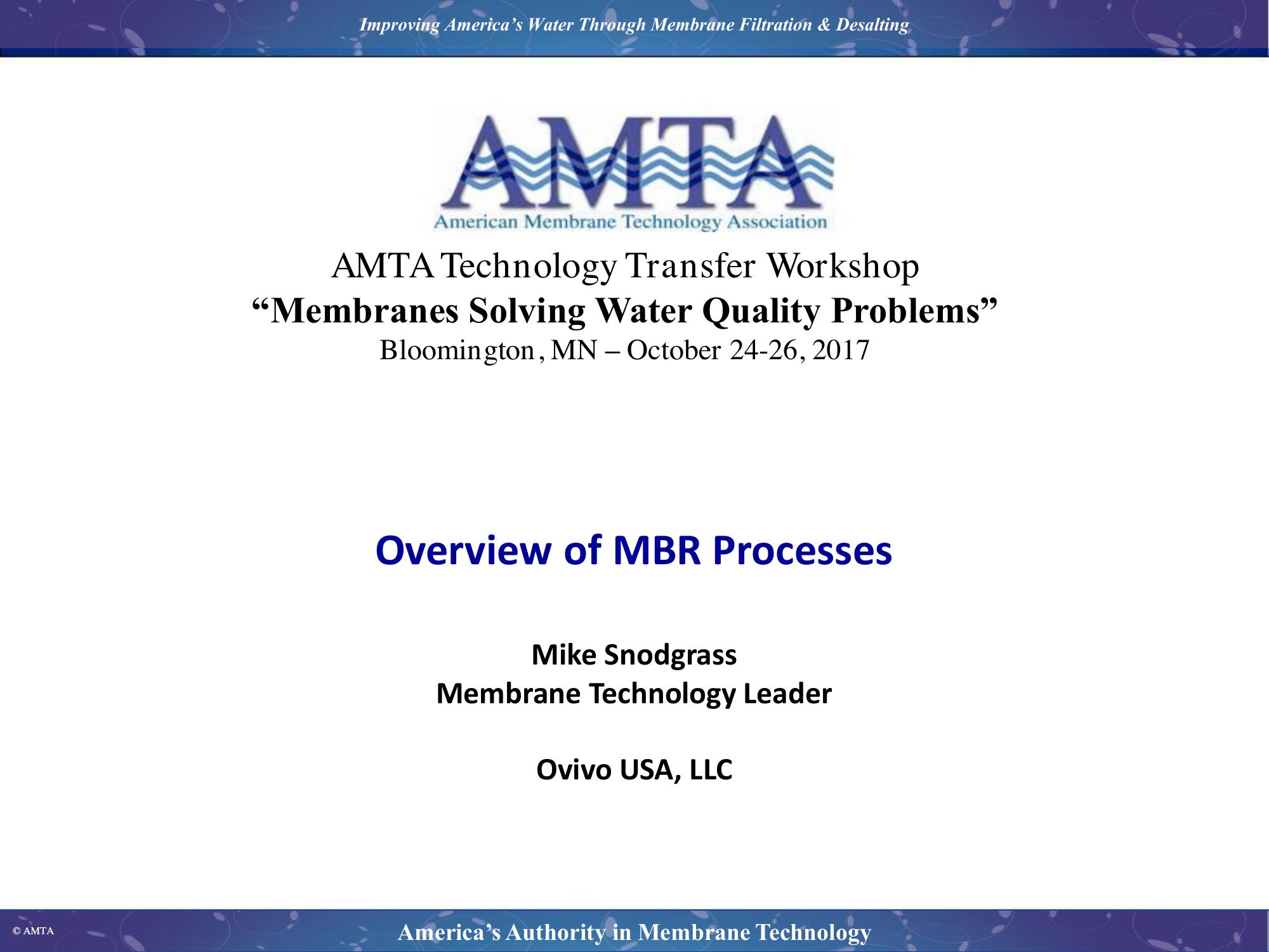 Membrane bioreactors (MBRs) are used in a wide variety of wastewater applications, including both municipal and industrial. MBRs are unique in that it consists of several subsystems that must work harmoniously together to ensure a successful operating system. The needs and requirements of a particular wastewater treatment project will drive the design, which can vary greatly based on the application. An overview of MBR technology along with municipal and industrial case studies will be discussed.
