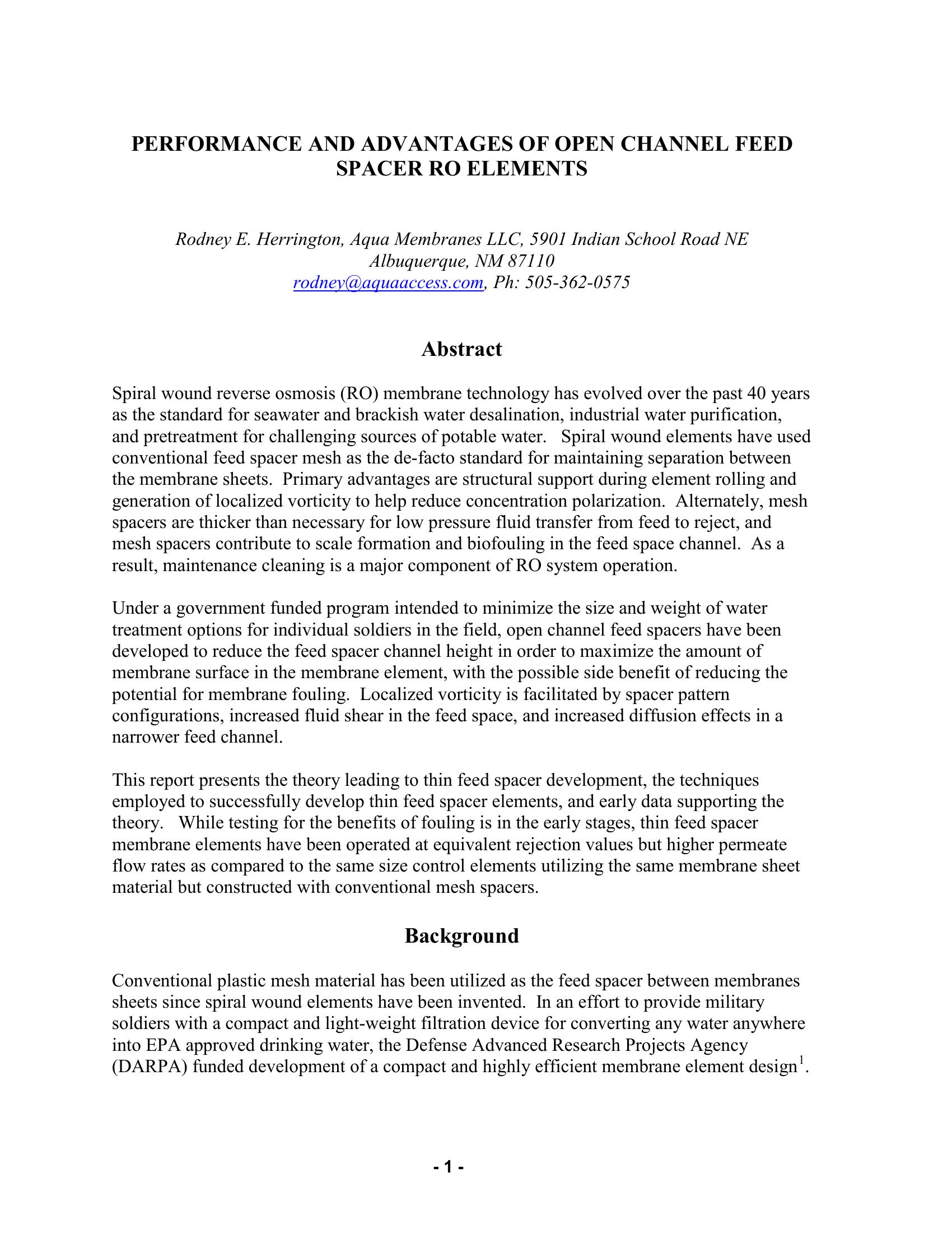 Performance and Advantages of Open Channel Feed Spacer RO Elements