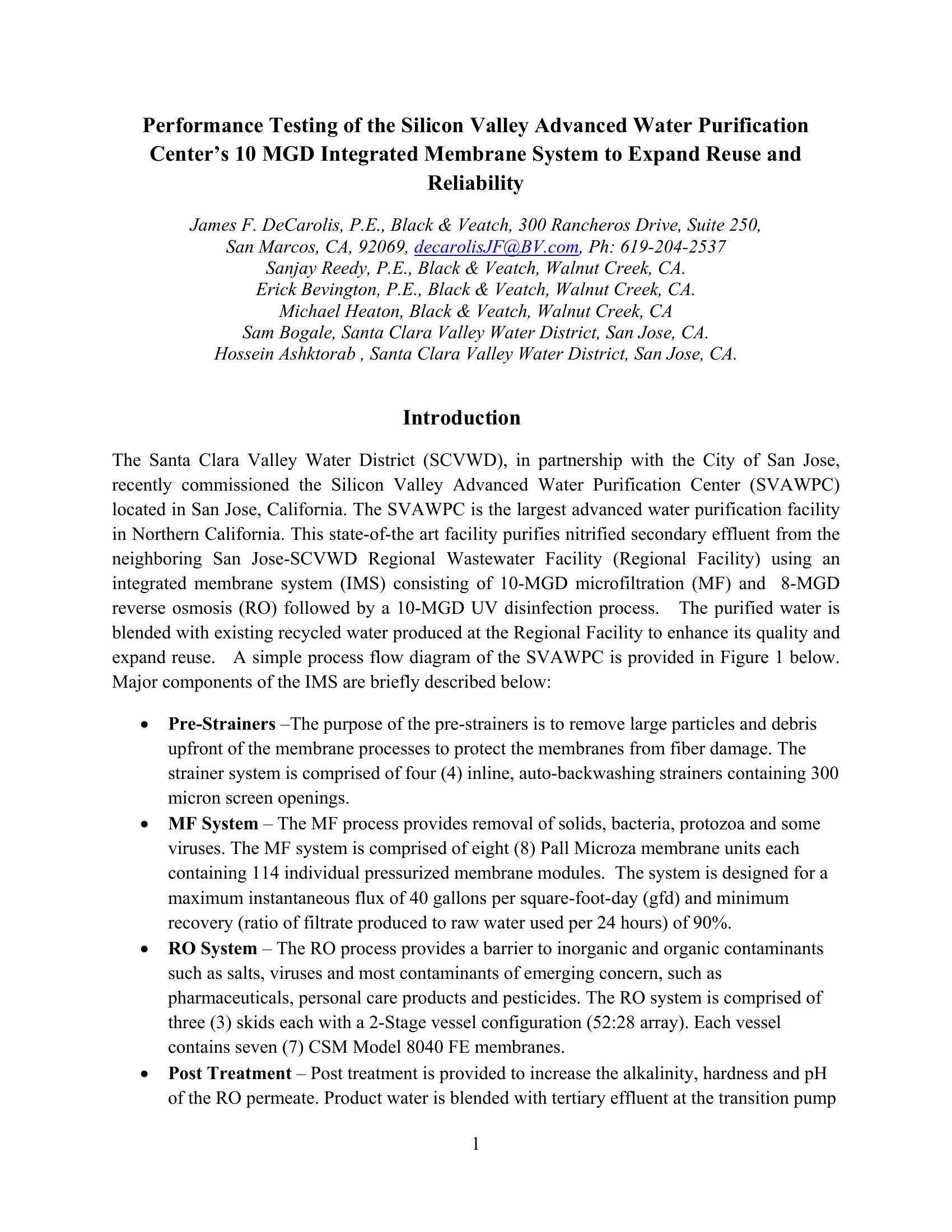 Performance Testing of the Silicon Valley Advanced Water Purification Center?s 8 MGD Integrated Membrane System to Expand Reuse and Reliability