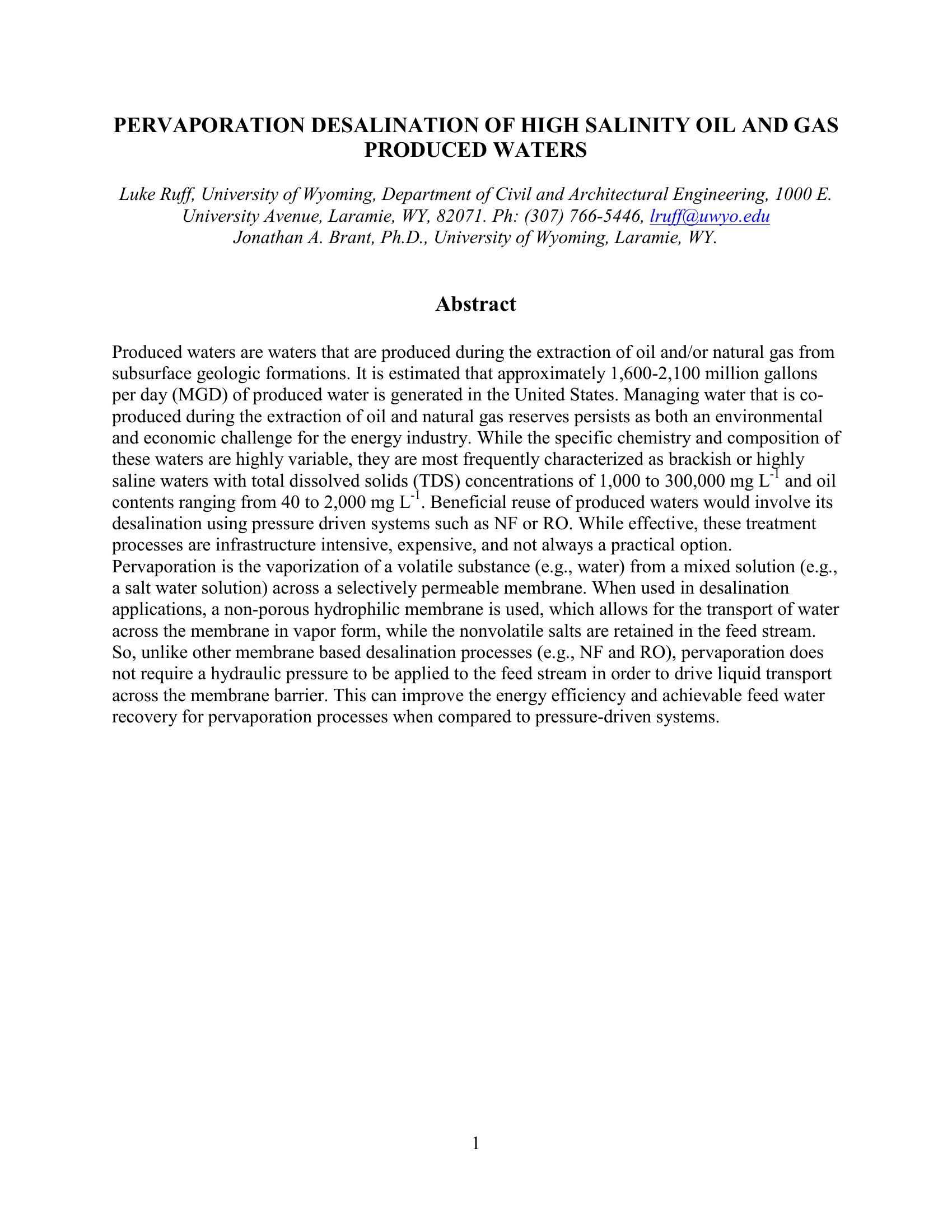 | Keywords | Produced water, hydraulic fracture, high TDS water, Pervaporation Desalination |