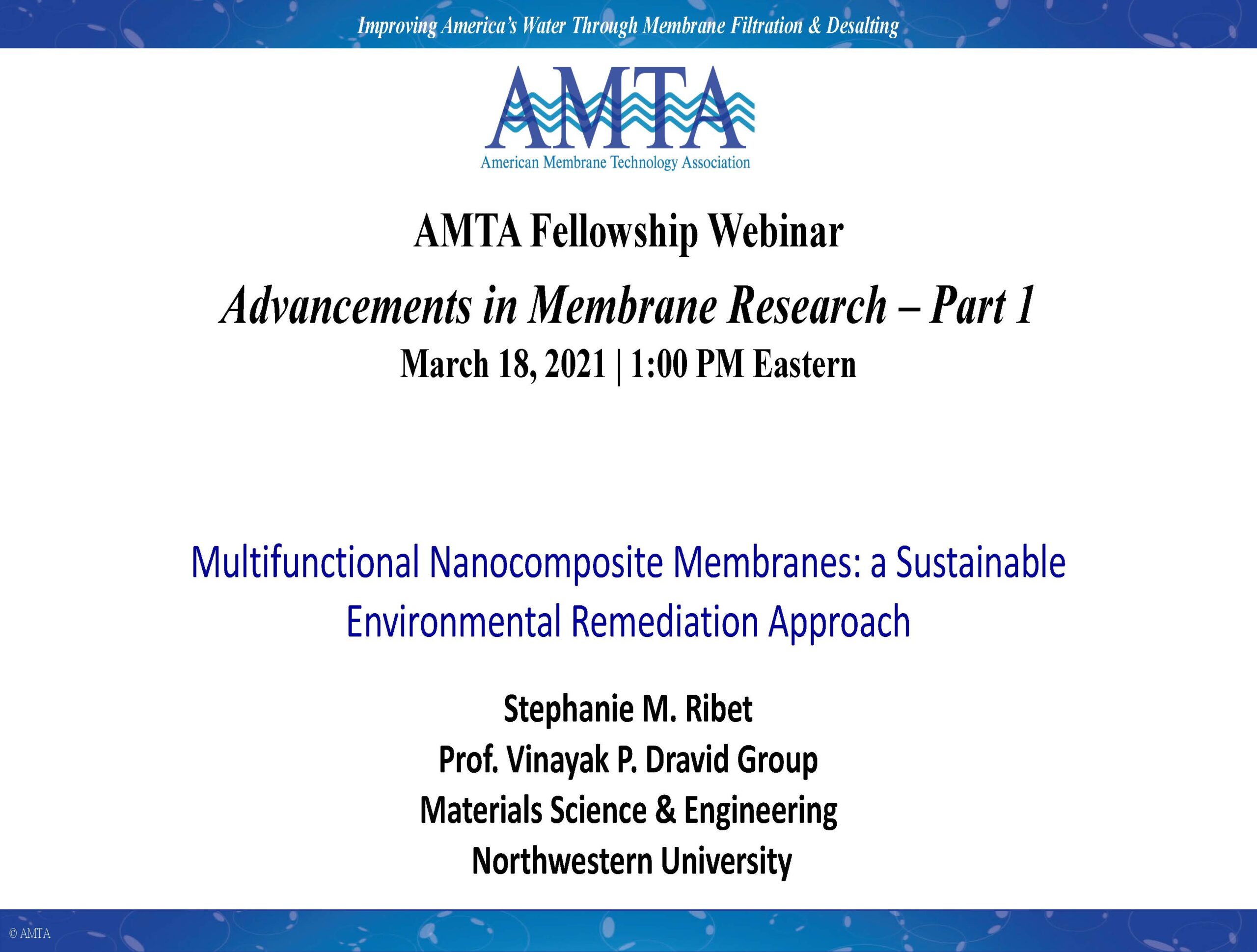 Aqueous phosphate pollution can negatively impact myriad ecosystems and introduces a variety of economic and public health problems. While novel remediation tactics based on nanoparticle binding have shown considerable promise in nutrient recovery from water, they are difficult to deploy at scale. The Dravid group has developed a membrane-based platform approach for environmental remediation of aqueous pollutants. Here, a nanocomposite slurry applied to a membrane by a facile, yet effective dip-coating process serves as an affinity coating, tailored for specific pollutants. This scalable, economically viable, and environmentally friendly approach is demonstrated with our phosphate elimination and recovery lightweight (PEARL) membrane, which can selectively sequester >99% of phosphate ions from solution. Mild tuning of pH promotes at-will adsorption and desorption of nutrients, allowing for phosphate recovery and PEARL membrane reuse. Moreover, we characterize the interfaces of the structure across various length scales to unravel clues about the specific binding mechanism, which provides insight into how the PEARL membrane approach can be extended to address other pollutants. This presentation will provide details on the performance of the PEARL membrane and its structure, as well as discuss how this strategy can be extended to other emerging contaminants.