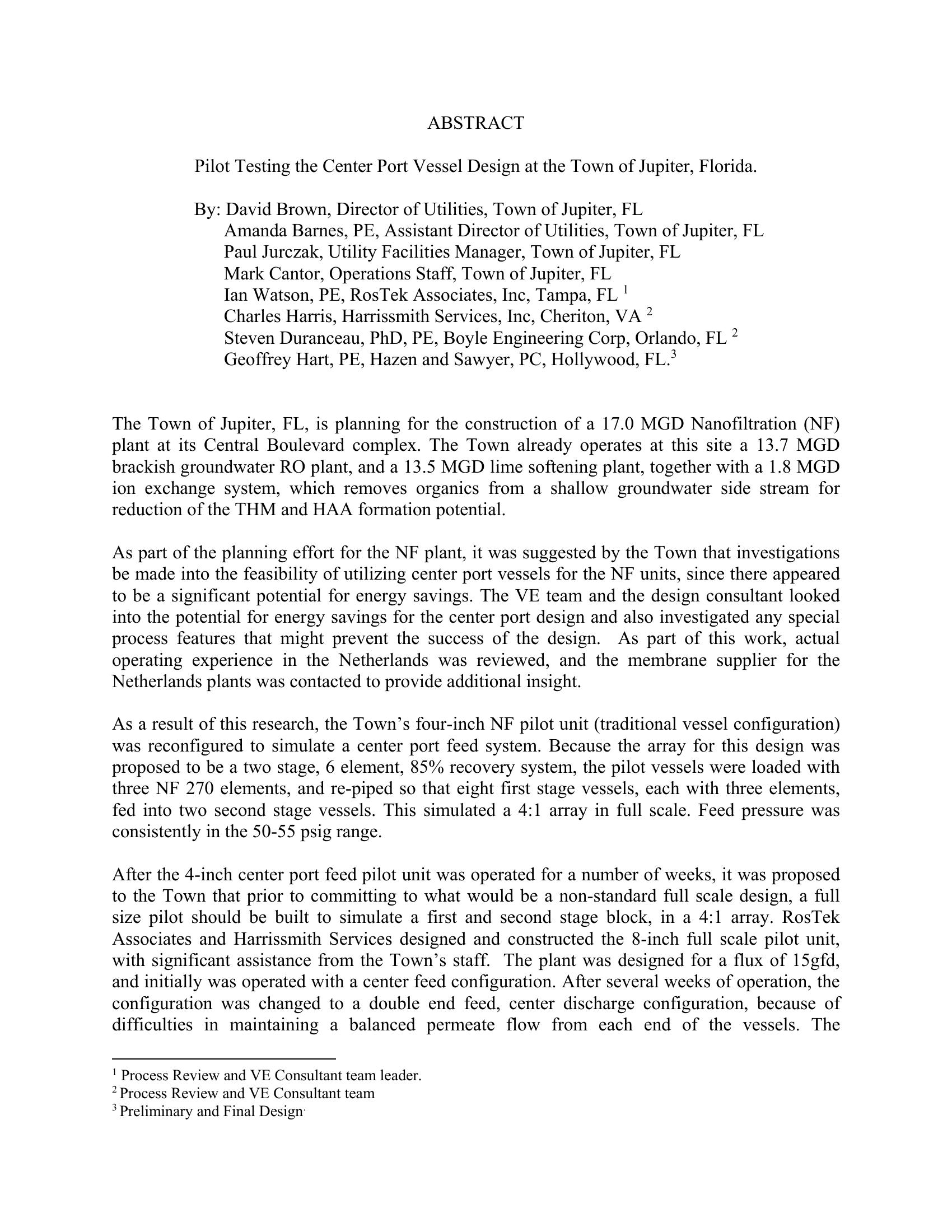 | Keywords | Town of Jupiter, Florida, lime softening, ion exchange, Nanofiltration (NF), central port vessel, split feed, energy savings |