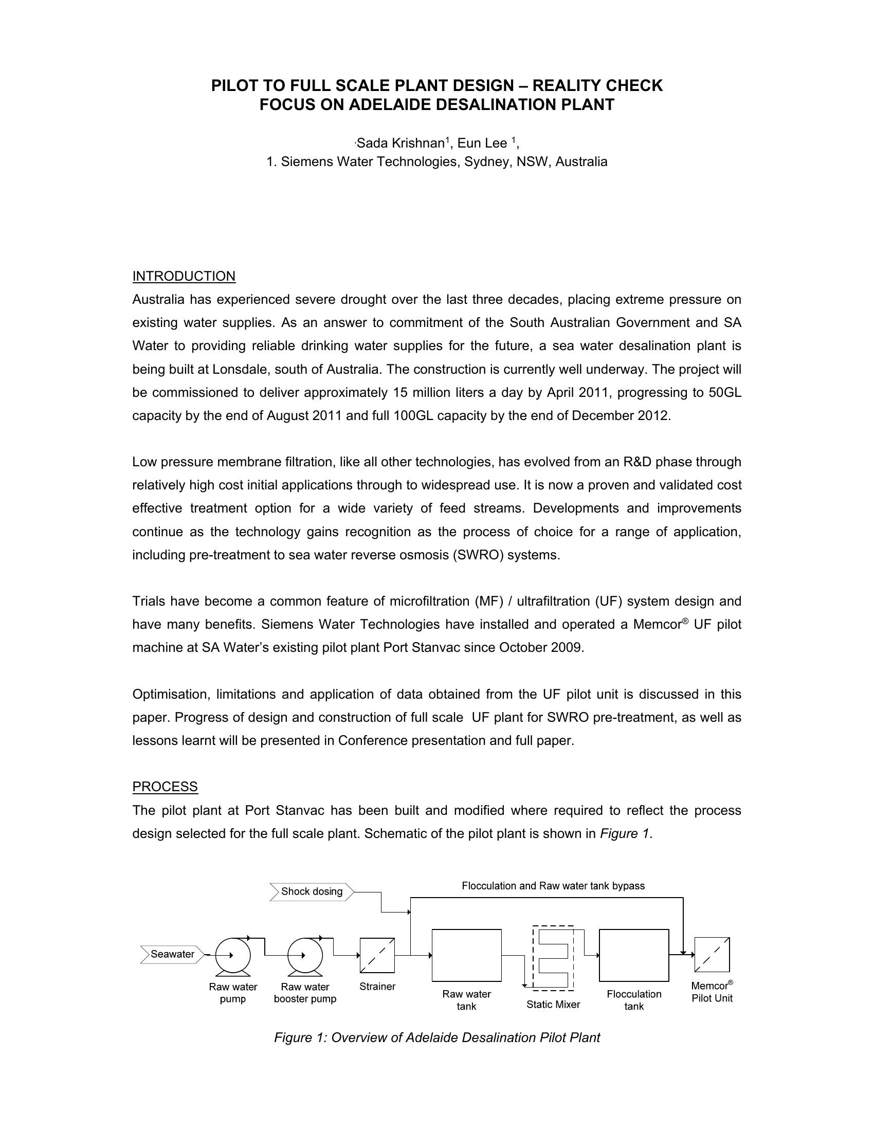 Pilot to Full Scale Plant Design – Reality Check Focus on Adelaide Desalination Plant