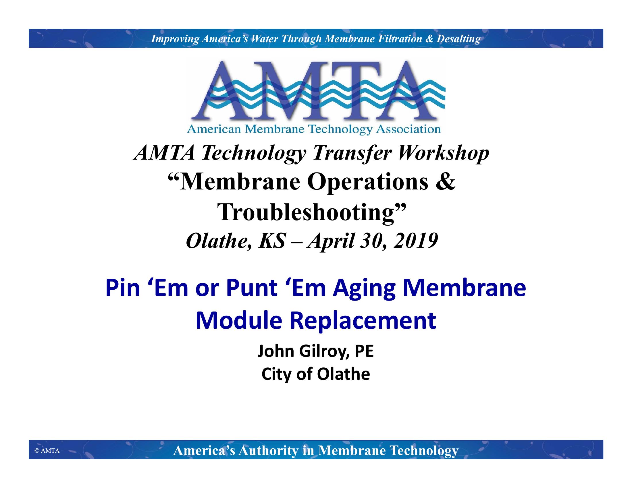 Presentation will show how maintenance procedures developed by Olathe staff to identify fiber breaks, pinning procedures and pin tracking methods were used to track the condition of aged membrane modules. This information was used as the determining factor to initiate a capital improvement project. The presentation will cover the project where the aged membrane modules were replaced.