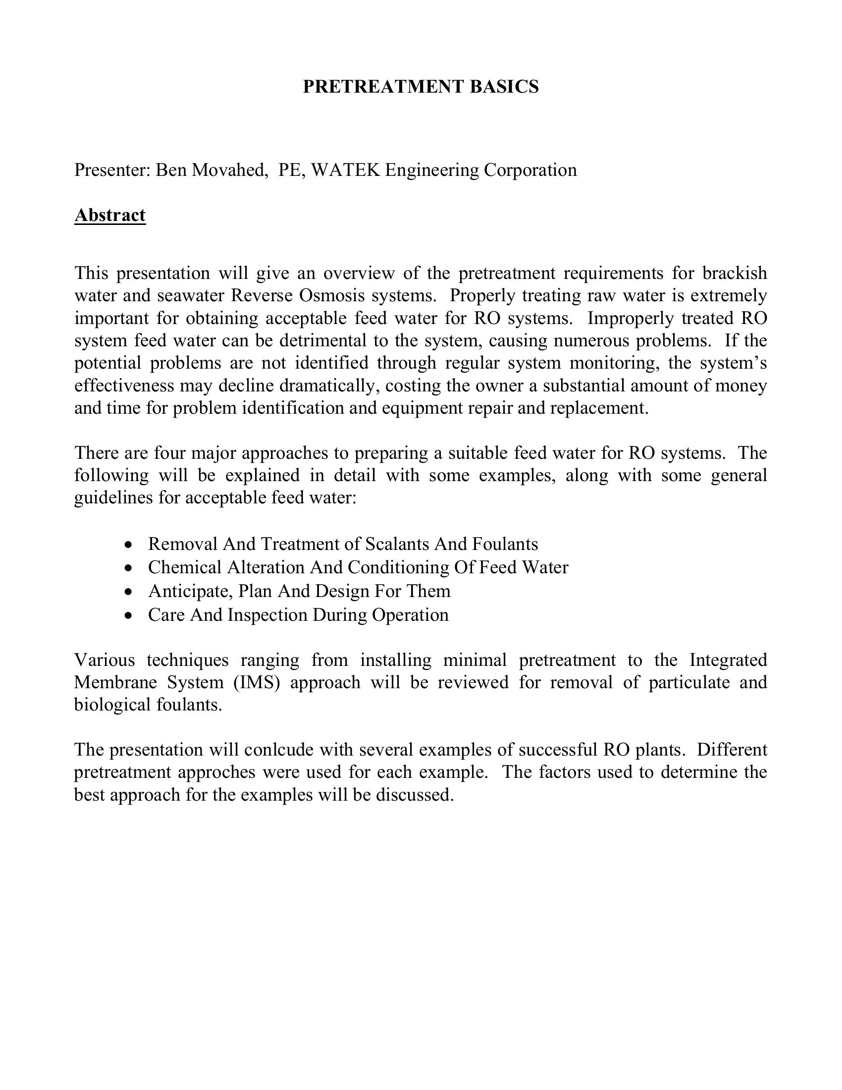| Keywords | pretreatment, integrated membrane system (IMS) |