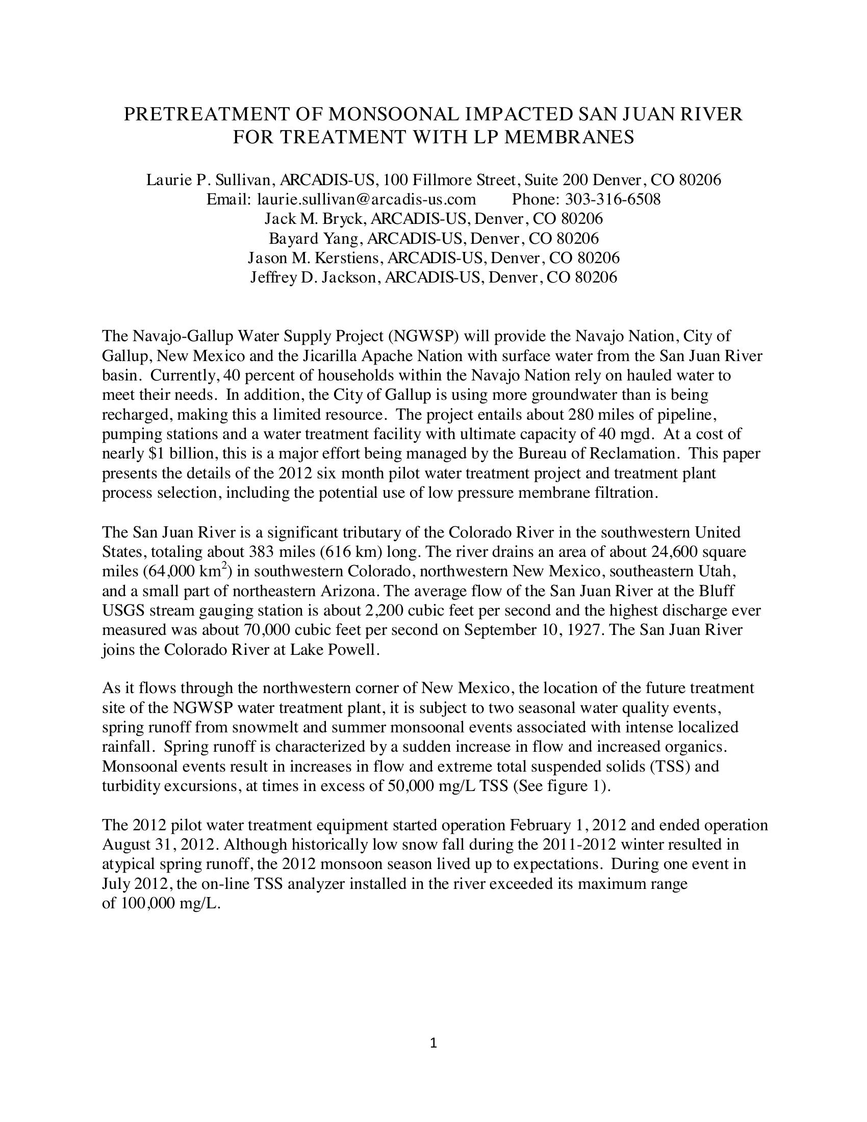 Pretreatment of Monsoonal Impacted San Juan River for Treatment with LP Membranes