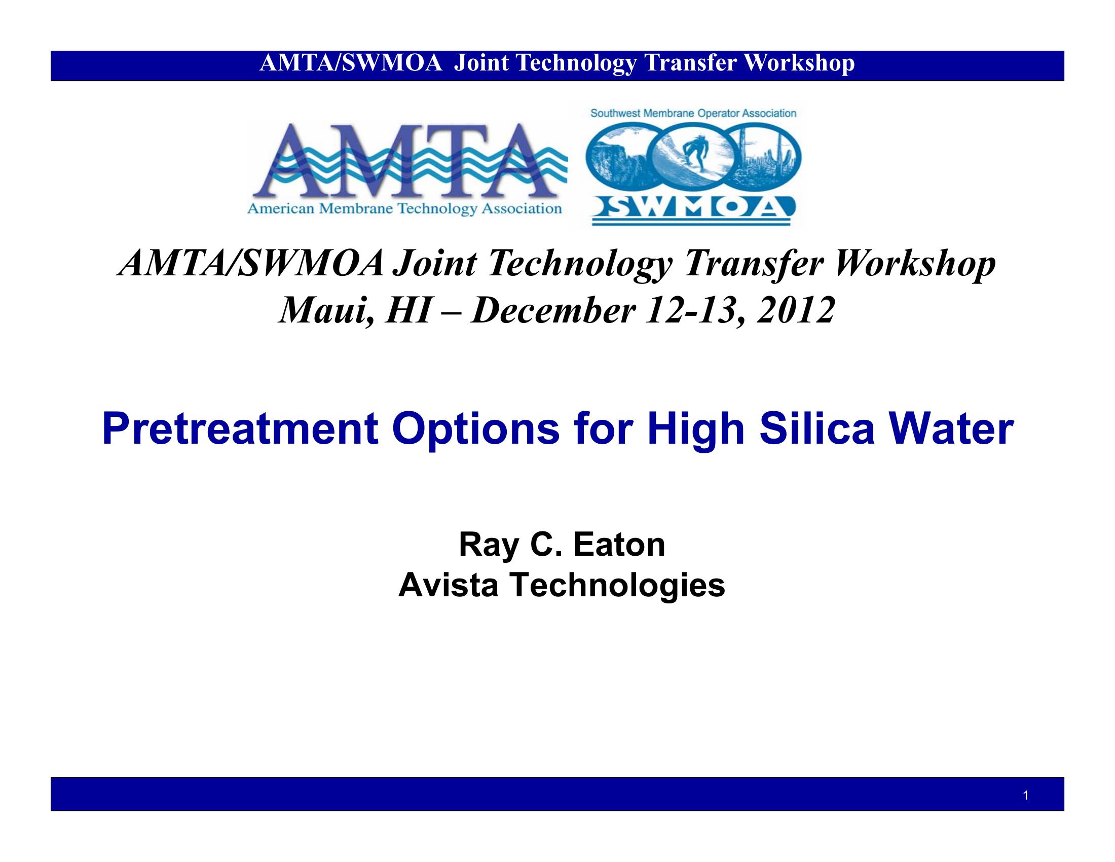 This PowerPoint presentation describes pretreatment options for dealing with silica in membrane feed waters.