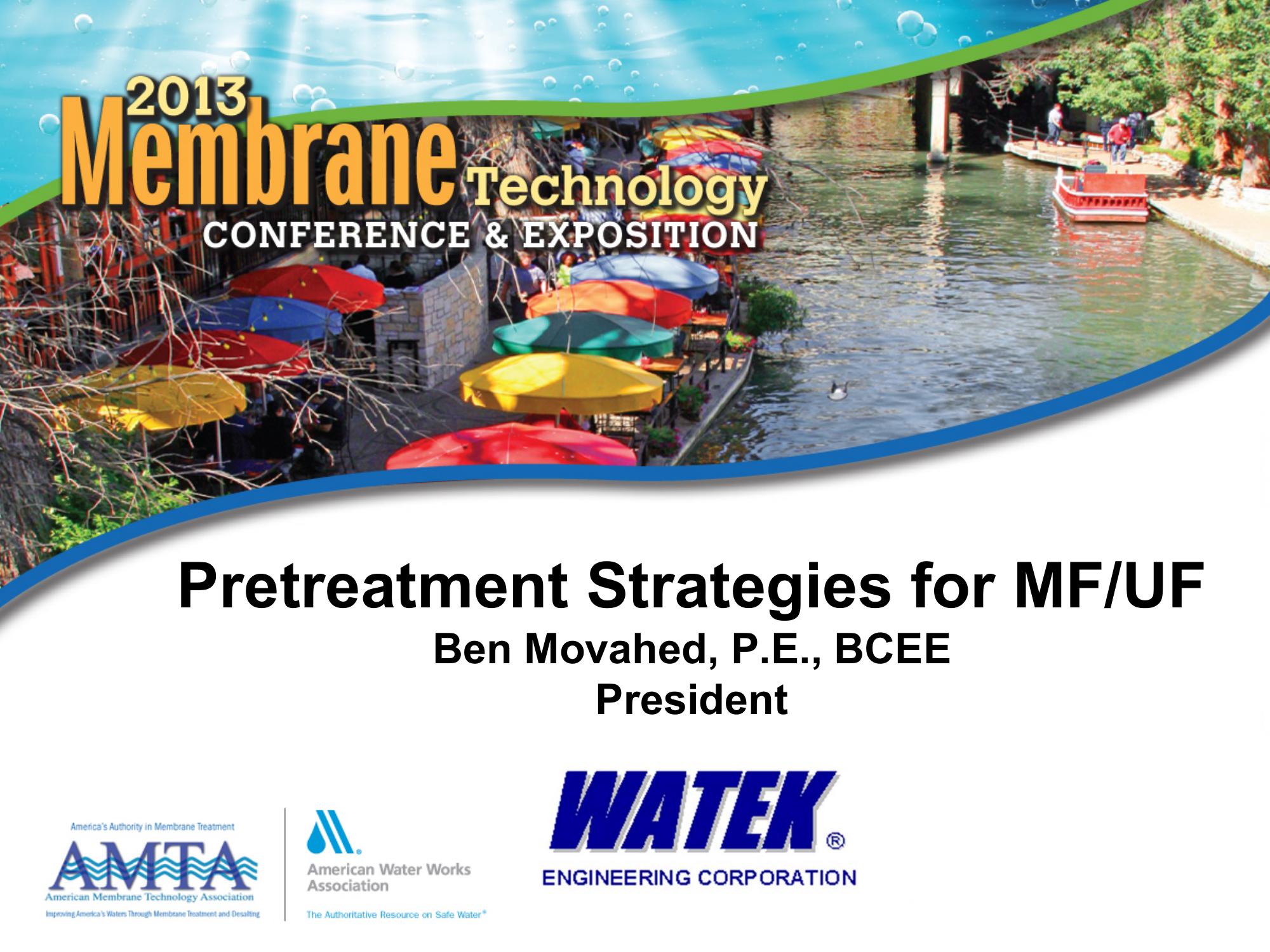 To prevent membrane scaling or fouling, pretreatment is utilized in advance of microfiltration of ultrafiltration. Although usually limited to strainers or screens, the presentation details how more elaborate strategies are used to combat higher organic loadings including settling and coagulation.