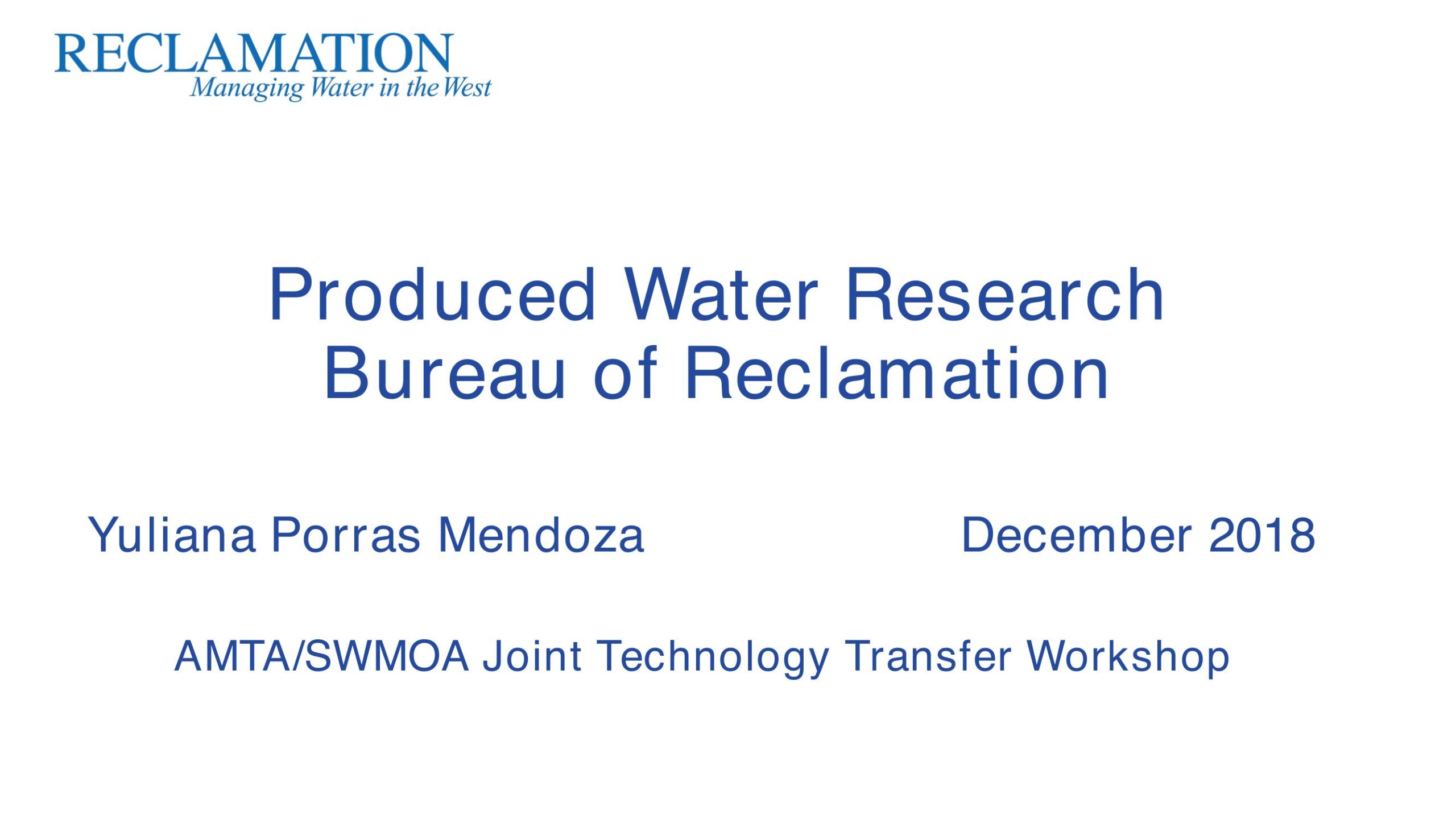 Bureau of Reclamation has been making investments in research in the area of produced water for over a decade. There area various lessons learned and results in this area of research that are currently informing our current research programs. There are gaps and needs being identified and moving forward this impaired water source is becoming a key part of the advanced water treatment research roadmap.