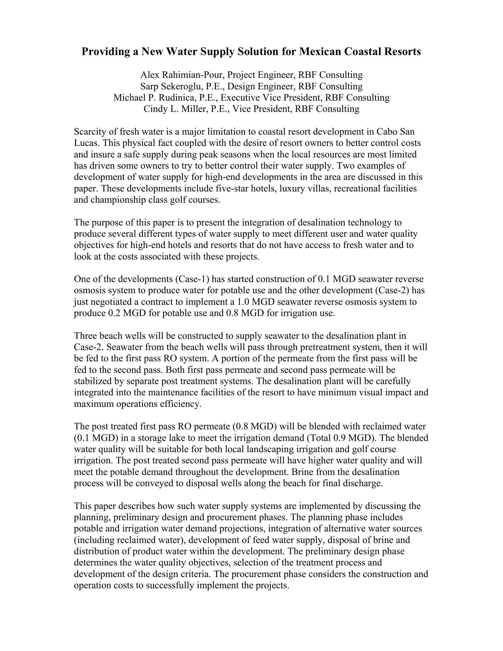 Providing a New Water Supply Solution for Mexican Coastal Resorts