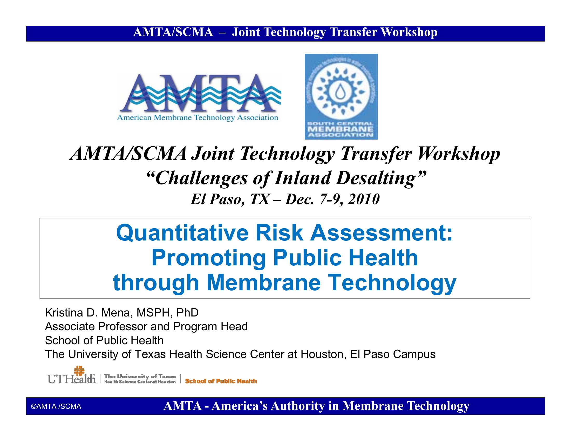 Quantitative Risk Assessment: Promoting Public Health through Membrane Technology