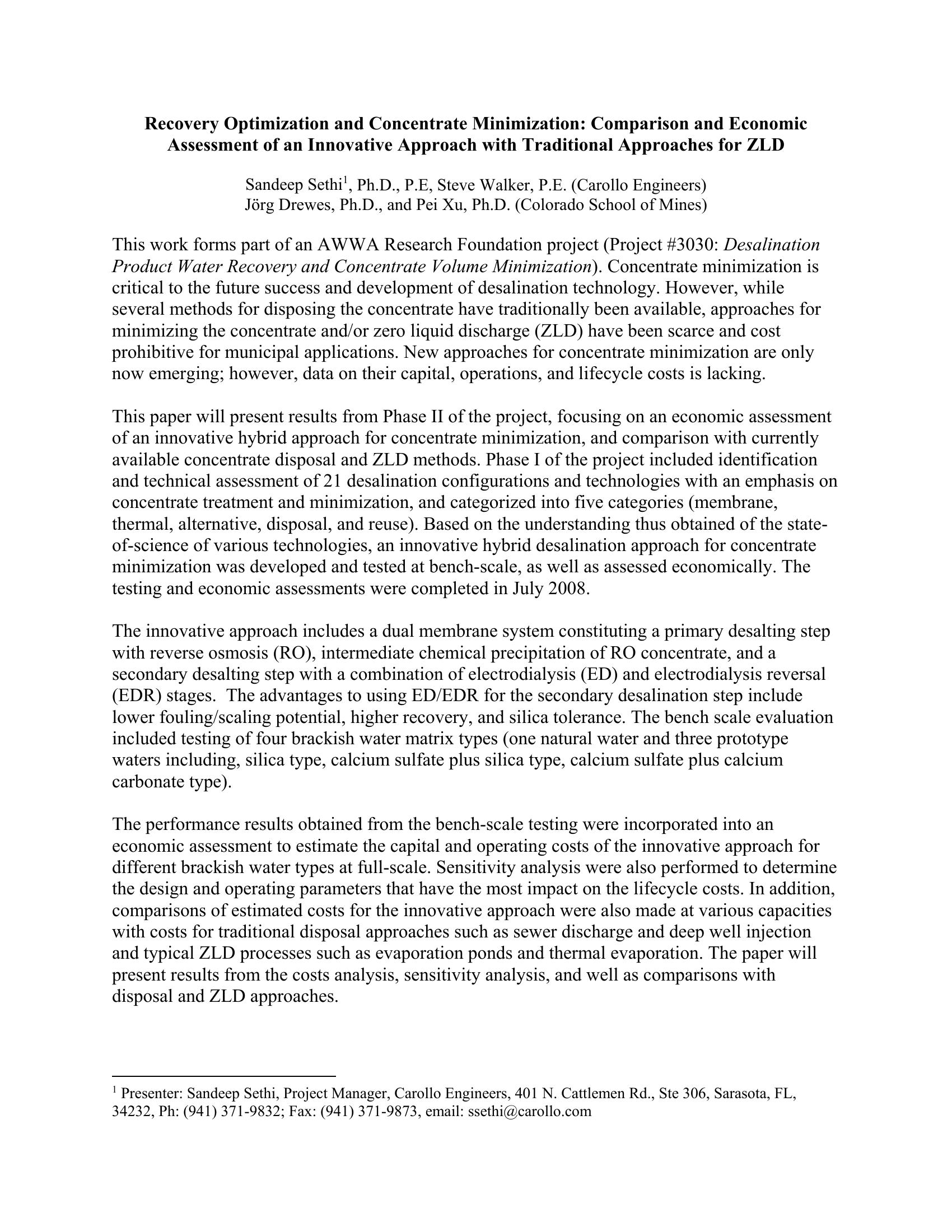 Recovery Optimization & Concentrate Minimization: Comparison & Economic Assessment of an Innovative Approach with Traditional Approaches of ZLD