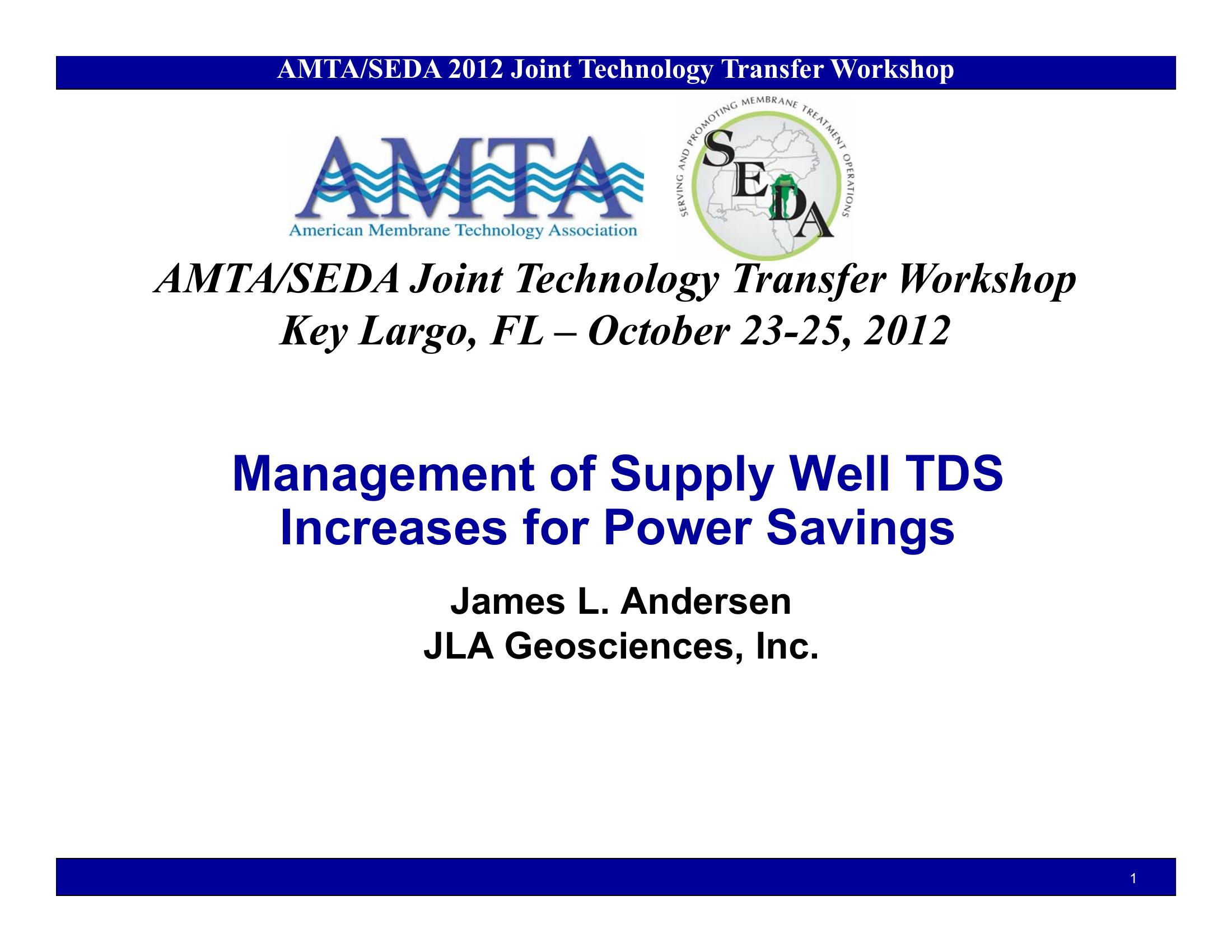 This presentation describes the hydrogeology of the Floridan aquifer; the variations with depth and thickness; the use of modelling to control and predict the natural increases in TDS due to horizontal and vertical leakance; design of wellfield to sustain well production and quality.