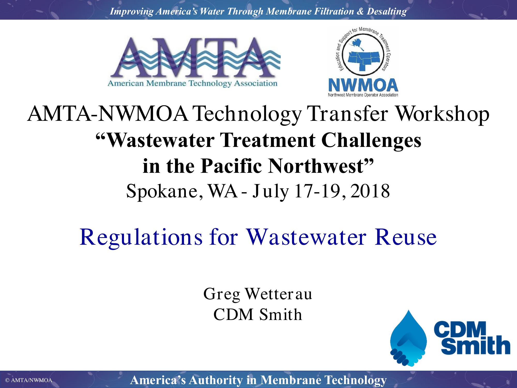 The Guidelines for Water Reuse published by the USEPA have served as an authoritative nationalwide reference in the support of state specific regulations. The document covers both non-potable and potable reuse, and was supplemented in 2017 with a Potable Reuse Compendium, focusing on key issues with the implementation of potable reuse. This presentation will discuss permitting of wastewater reuse facilities, both in Washington State and nationwide, focusing specifically on the use of membrane technologies to comply with evolving reuse regulations.