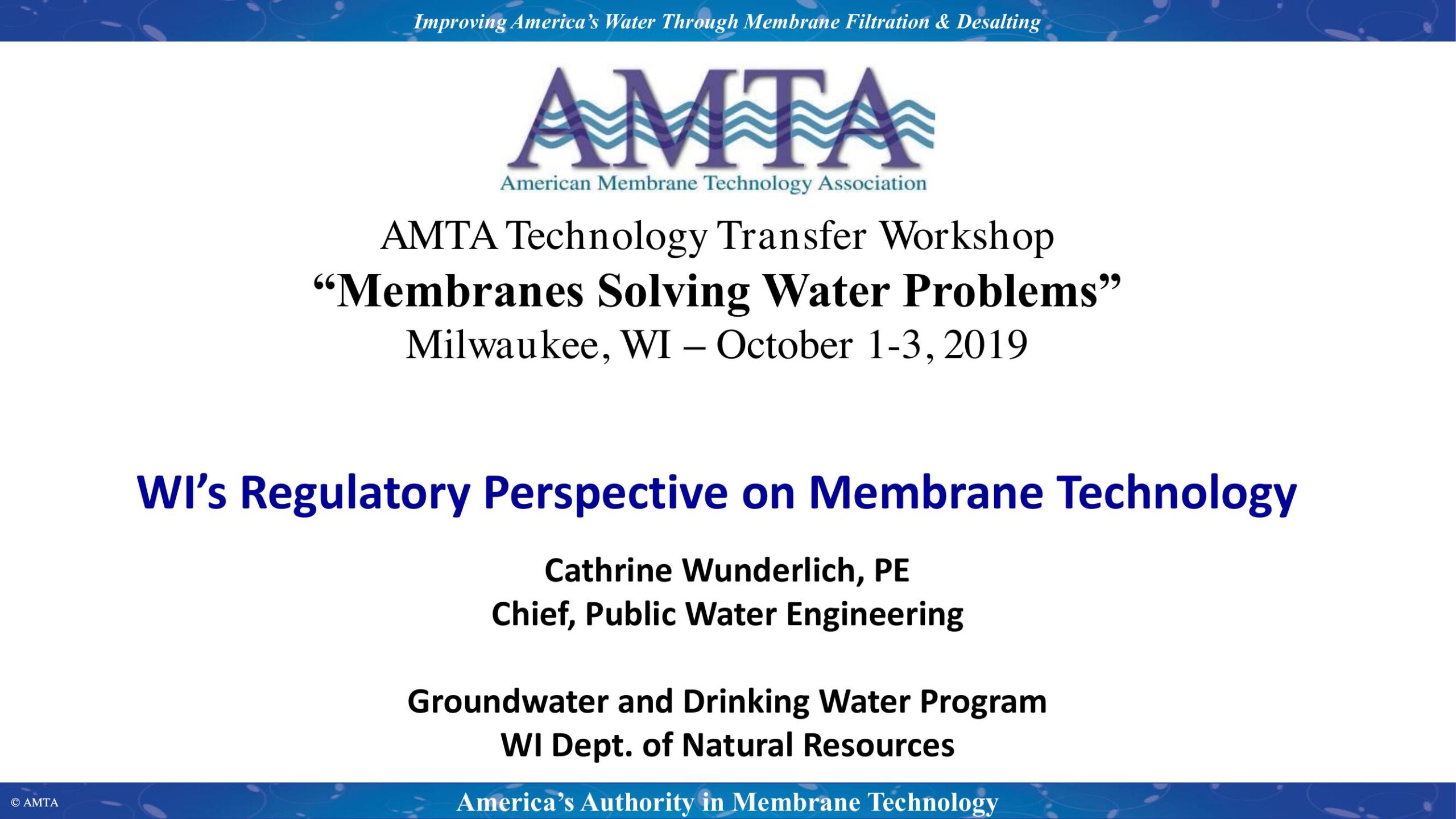 A presentation on membrane-based treatment by the regulatory agency in Wisconsin that is responsible for water treatment project oversite.