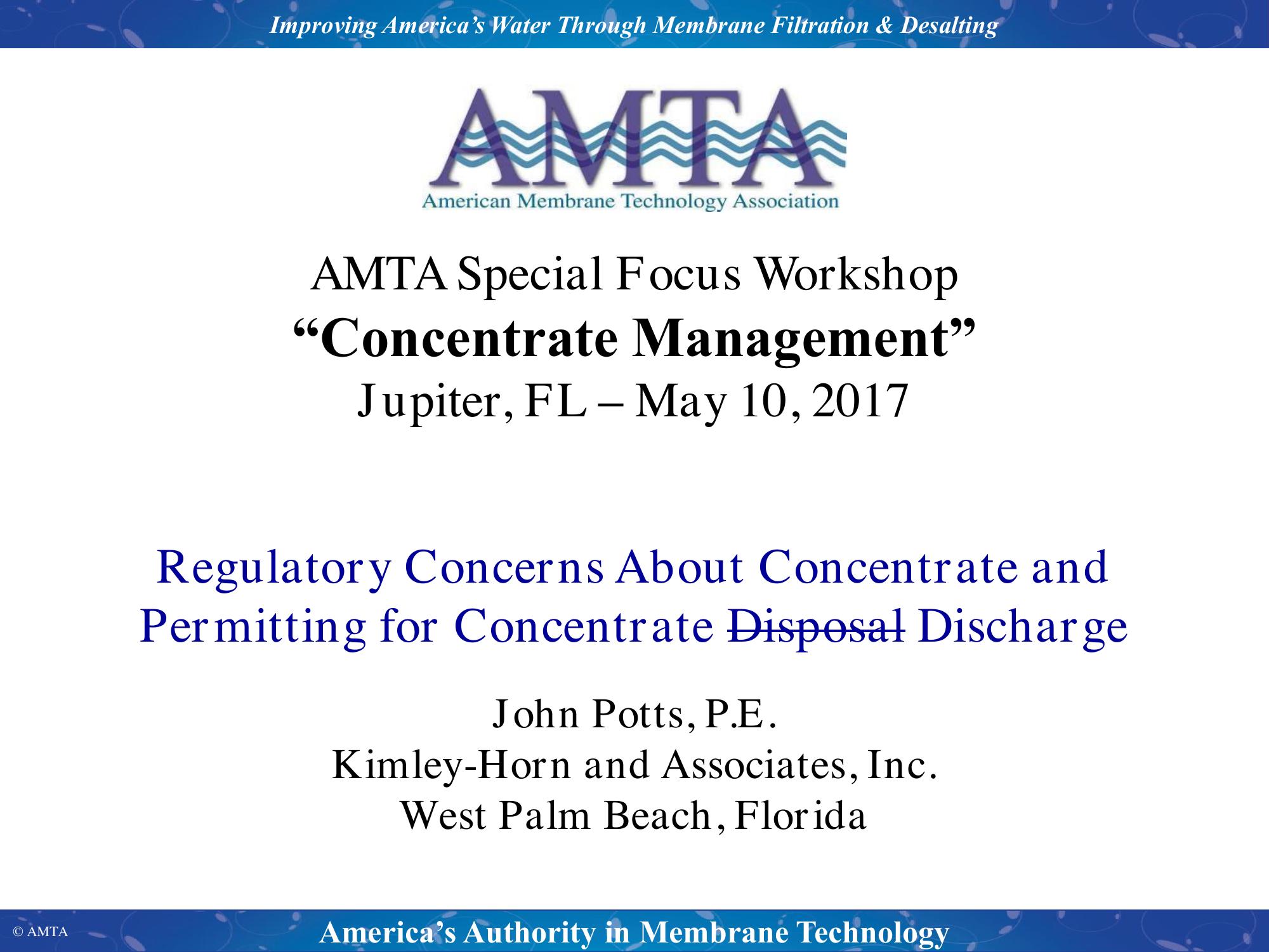 Regulatory Concerns About Concentrate and Permitting for Concentrate Disposal