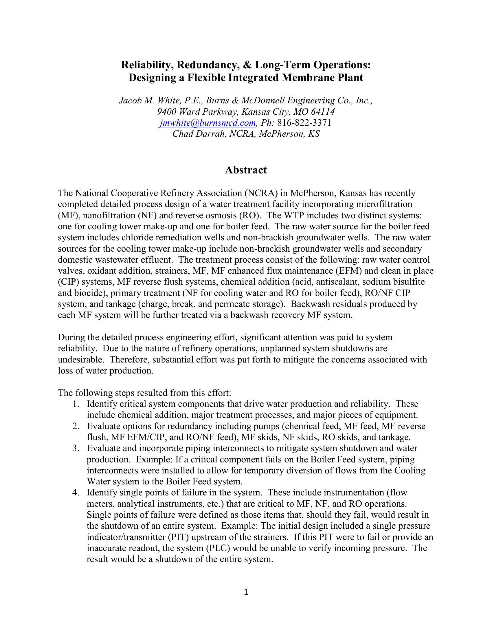 Reliability, Redundancy, & Long-Term Operations: Designing a Flexible Integrated Membrane Plant