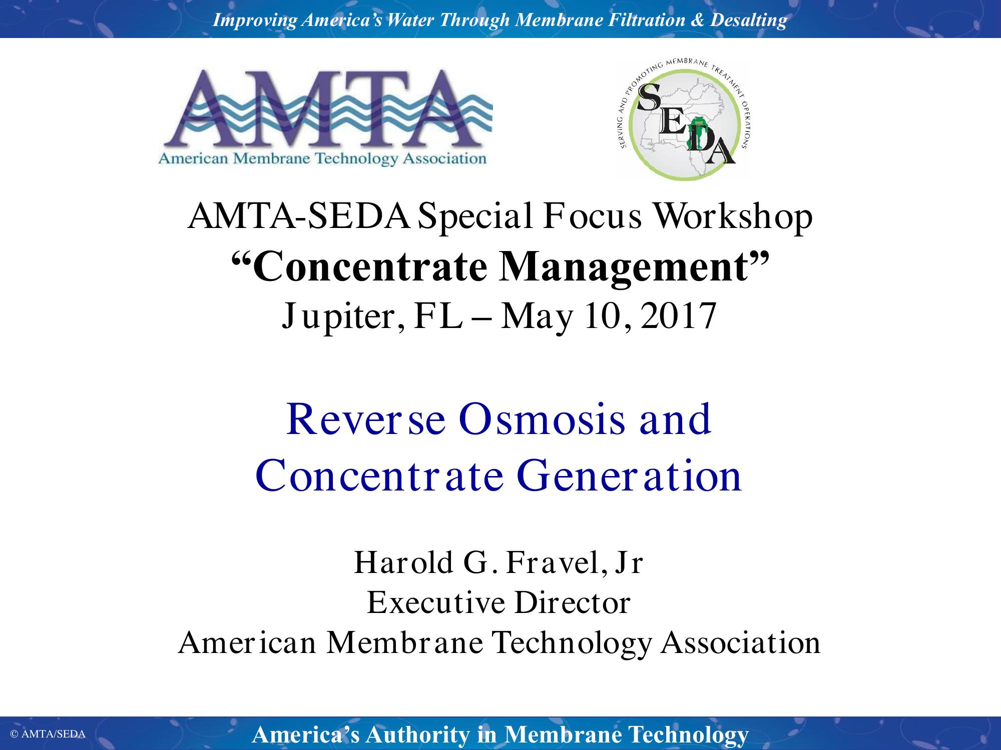 This presentation will describe the basics of reverse osmosis and how concentrate is part of the process. The importance of recovery rate, salt passage, concentrate factor and more will be discussed. The presention will provice a basis for the discussion about concentrate management.