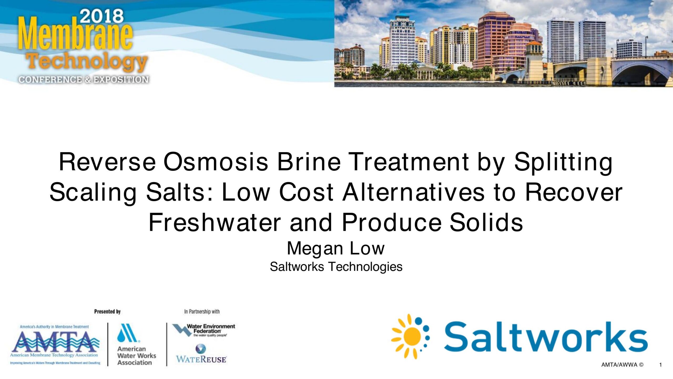 Reverse Osmosis Brine Treatment by Splitting Scaling Salts: Low-Cost Alternatives to Recover Freshwater and Produce Solids