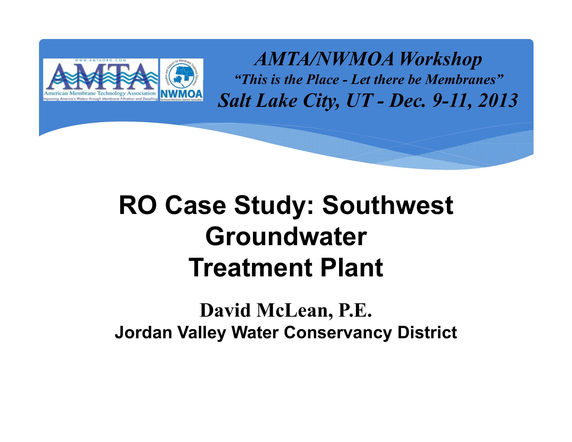 | Keywords | Southwest Groundwater Treatment plant, Jordan Valley, Utah, reverse osmosis |