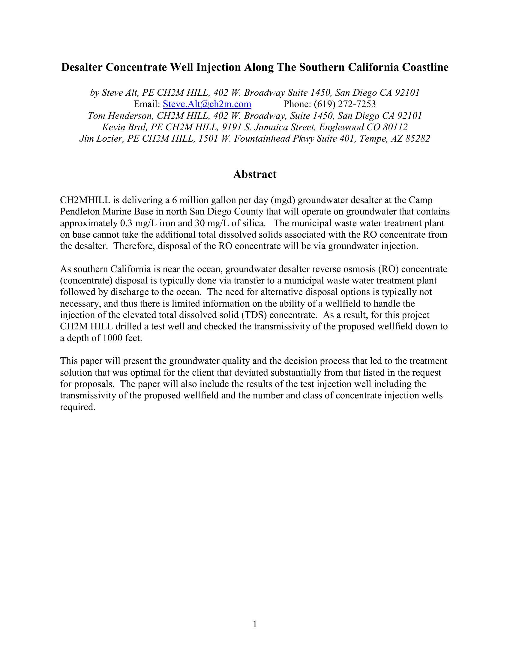| Keywords | Reverse Osmosis, Deep Well Injection, Concentrate Management |